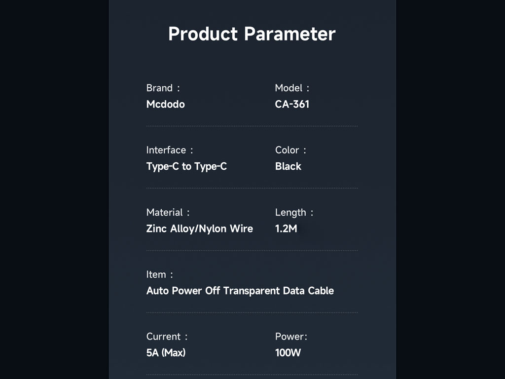 Mcdodo CA-3610 100W Type-C to Type-C Charging Cable