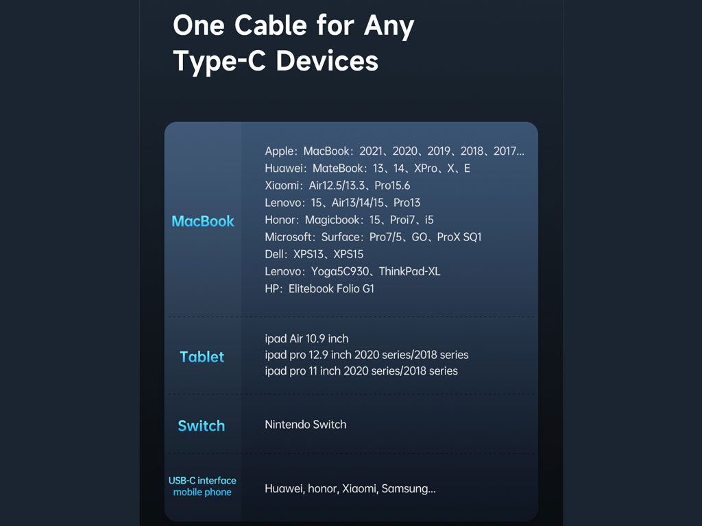 | قابل استفاده برای | انواع دستگاههای دارای درگاه تایپ سی |