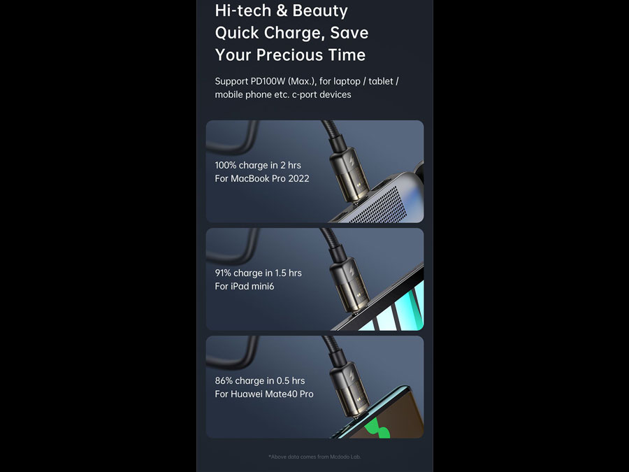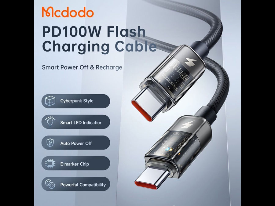 | مشخصات کابل سوپر فست شارژ و انتقال داده تایپ سی به تایپ سی 100 وات 1.2 متری مک دودو Macdodo CA-284 | |