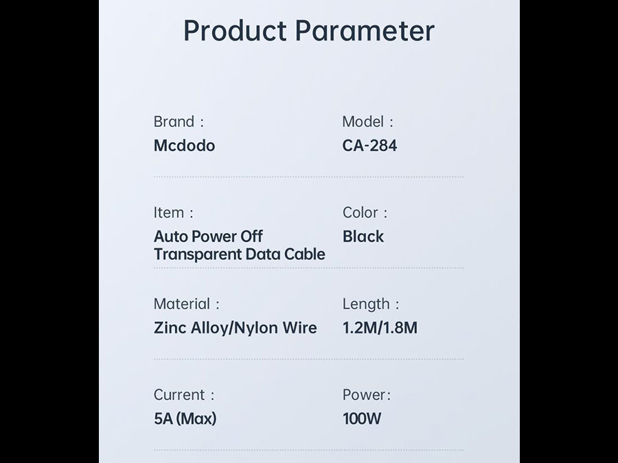 Mcdodo CA-284 Auto Power Off Type-C to Type-C Transparent Data Cable 100W 1.2m