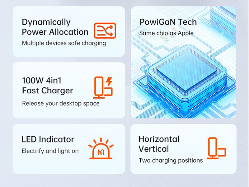 استفاده از نسل پنجم ماده گالیوم نیترید یک انقلاب در طراحی و تولید شارژر بحساب میآید. چراکه GaN یک ماده نیمه هادی بسیار جدید است که هم قابلیت رسانایی و هم انتقال نیرو بالایی مثل مس را دارد و هم میتواند یک عایق حرارتی و انرژی مانند شیشه باشد. به دلیل اینکه نیاز به عایق دوباره برای شارژر وجود ندارد. به همین علت ابعاد این شارژر 85x85x27 میلیمتر است و کوچکتر از شارژرهای رایح بازار ساخته شده و به راحتی قابل حمل و نقل می باشد.
