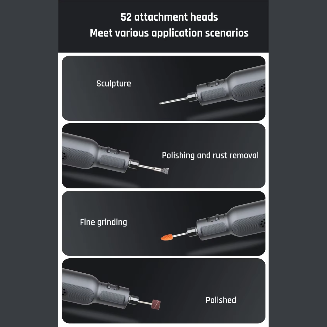 این فرز انگشتی با 52 سری مختلف عرضه میشود که امکان اجرای طیف گستردهای از کاربردها مانند حکاکی، پرداخت، زدودن زنگ و سنگزنی ریز و میکرو را فراهم میکند. وجود این سریهای متنوع باعث شده است که این ابزار برای کارهای هنری، تعمیرات الکترونیکی، پولیش سطوح فلزی و چوبی و حتی ظریفکاری مناسب باشد.