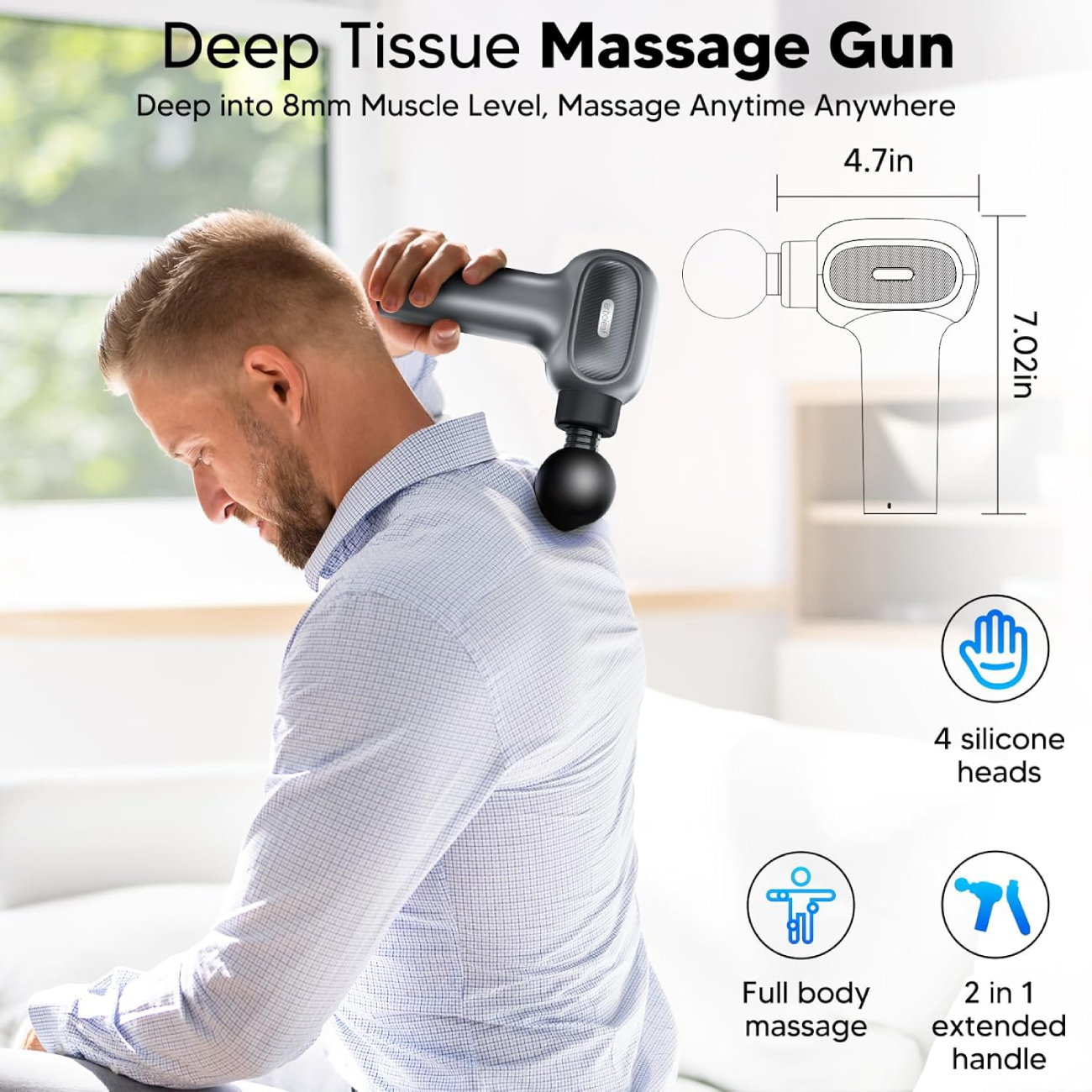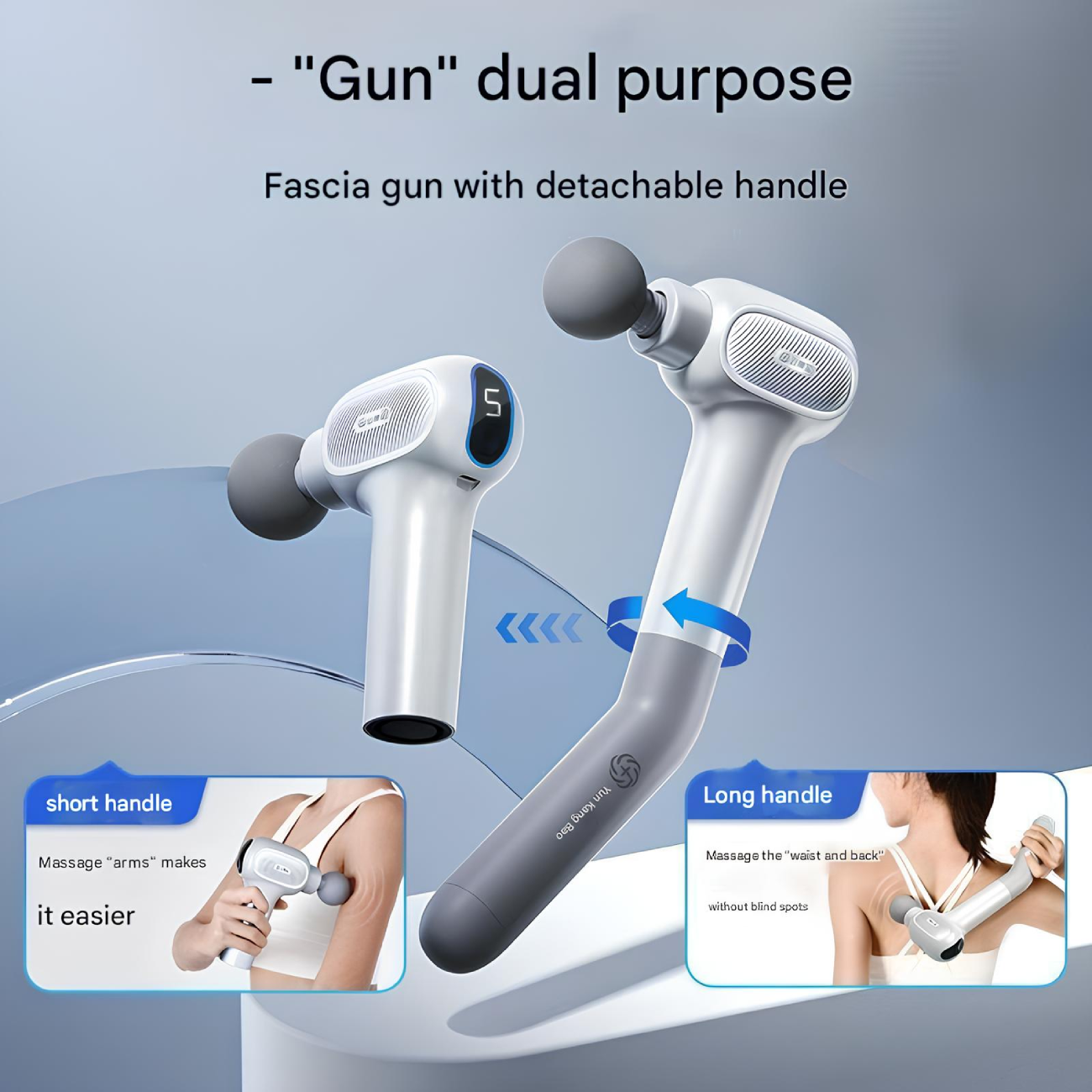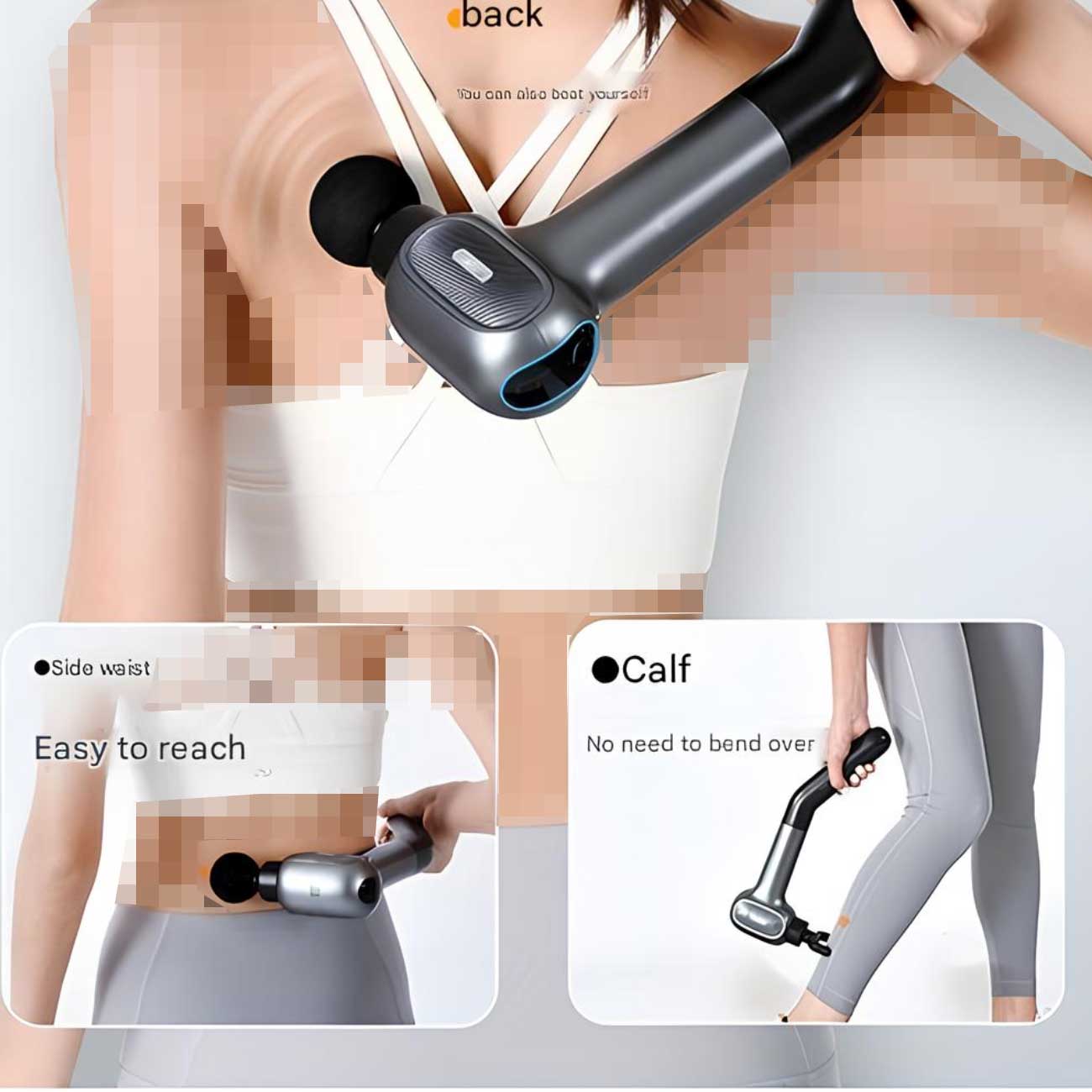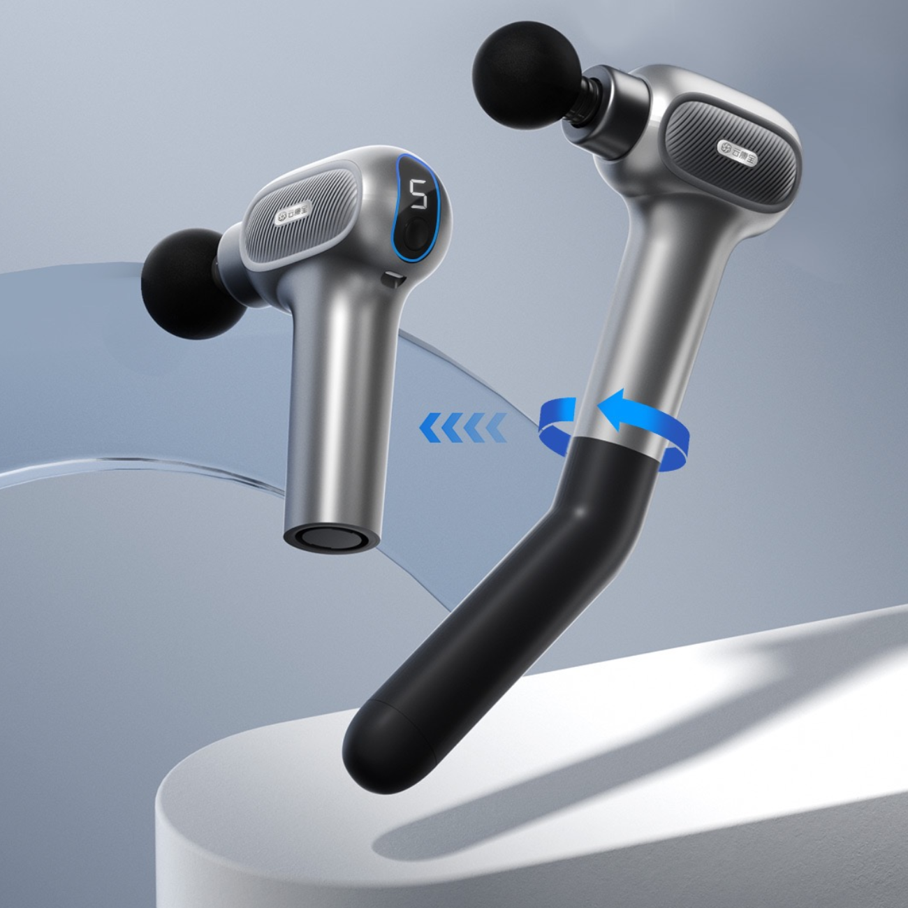 یکی از ویژگیهای جذاب این ماساژور تفنگی، دسته 120 درجهای و منحنی آن است که به راحتی با فرم بدن شما تطبیق پیدا میکند. این طراحی امکان ماساژ نواحی با دسترسی مشکل مانند پشت و کتف را فراهم میکند. همچنین، میتوان دسته را جدا کرده و دستگاه را به یک تفنگ ماساژ کوچک و قابل حمل تبدیل کرد که برای استفاده در سفر، باشگاه یا محل کار ایدهآل است.