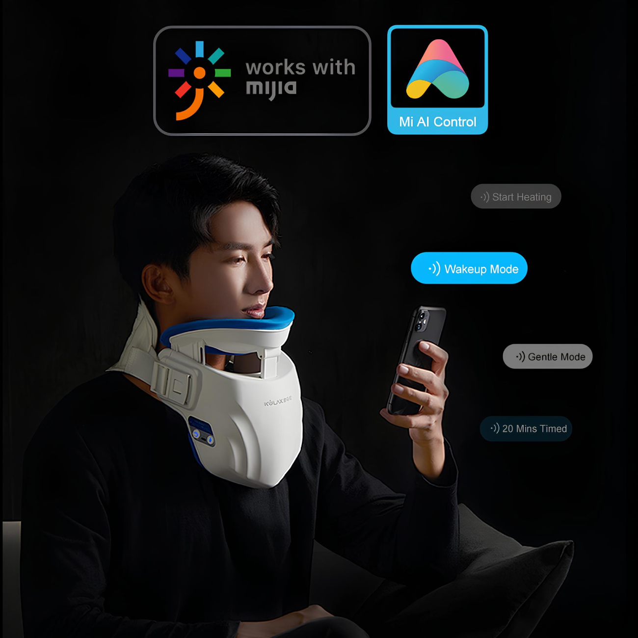 این گردنبند با اپلیکیشن Mijia شیائومی هماهنگ شده و کاربران میتوانند دما، زمان و شدت کشش را بهدلخواه خود تنظیم کنند.
