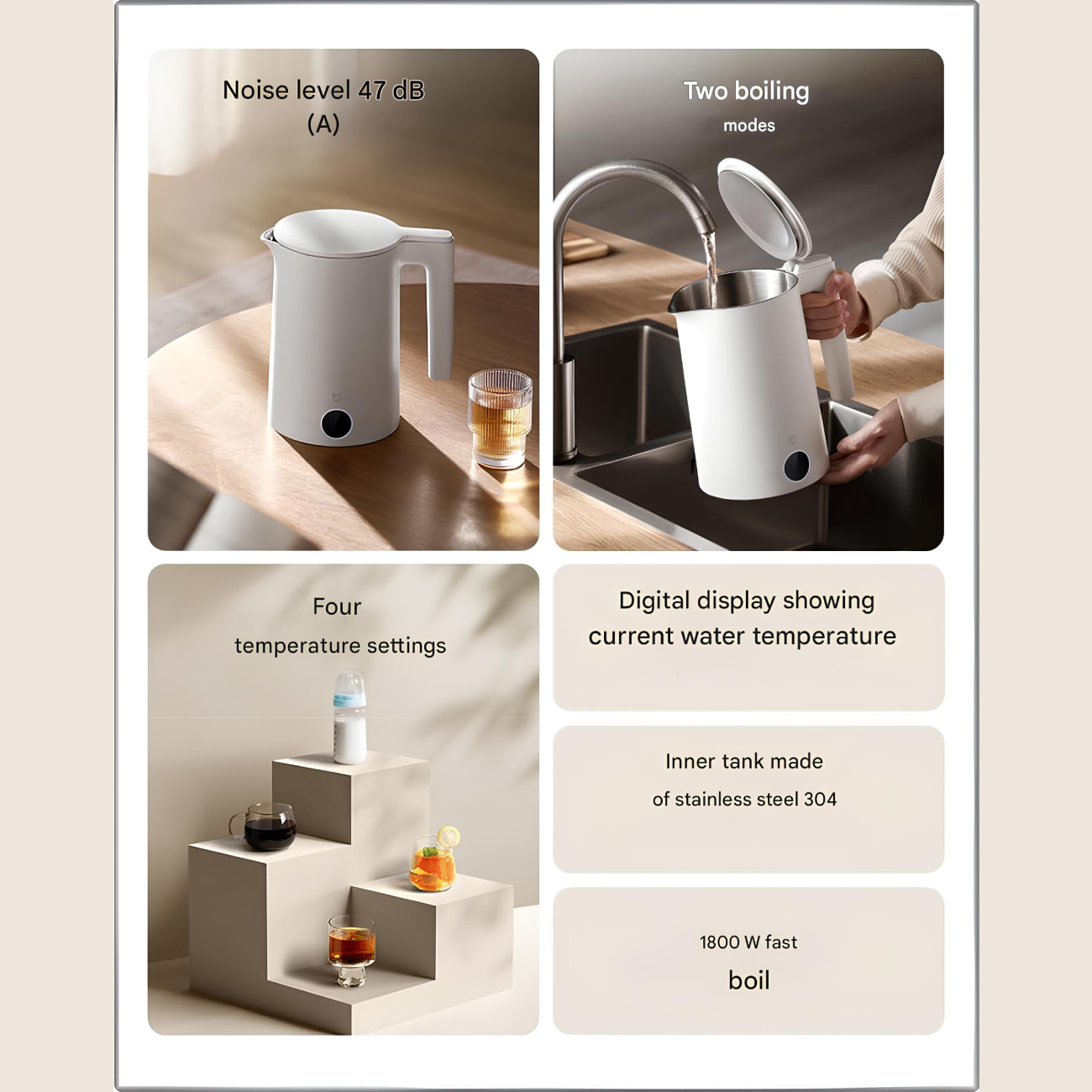 کتری برقی هوشمندمیجیا شیائومی 1.5 لیتر 1800 وات (نسخه کم صدا) MJJYSH02YM
