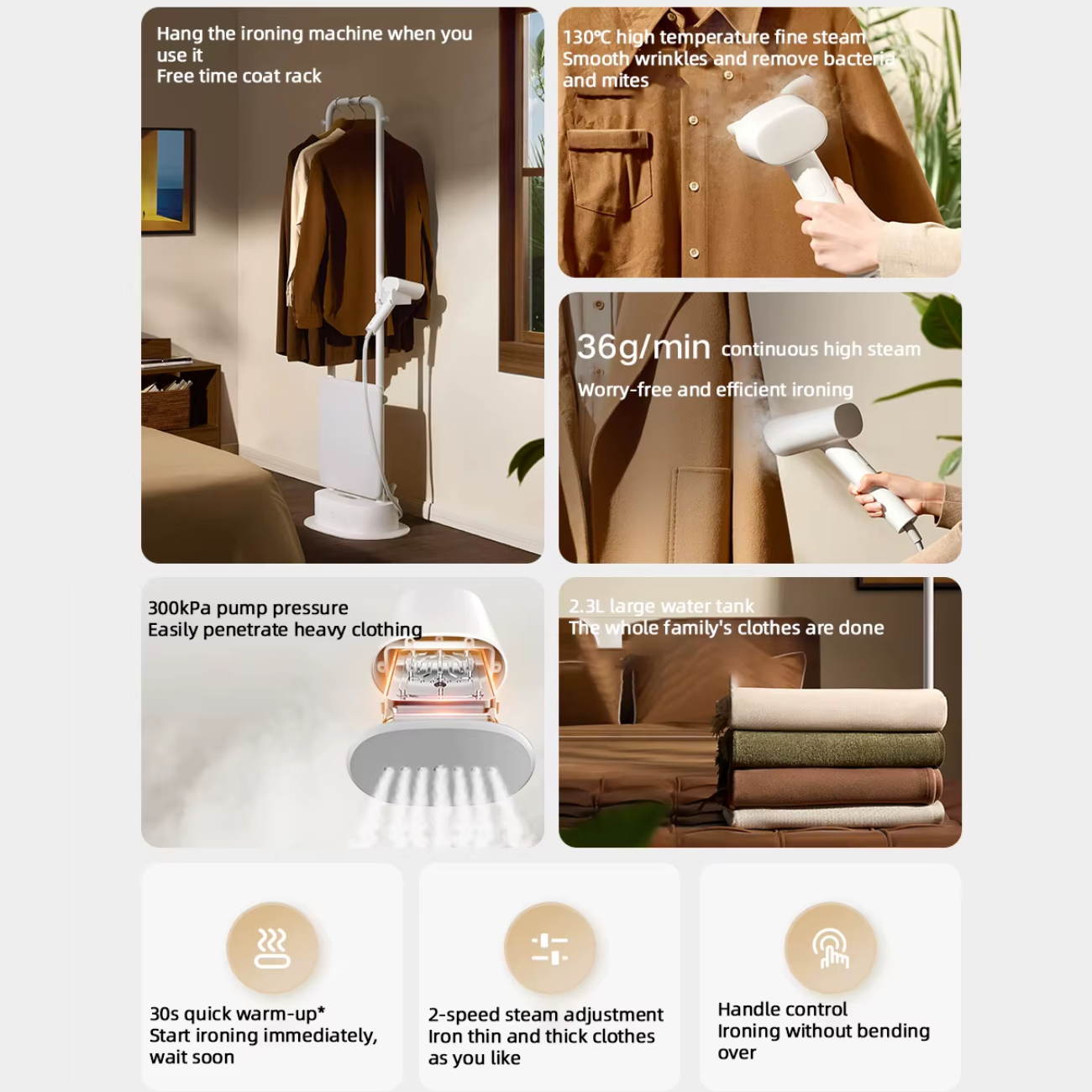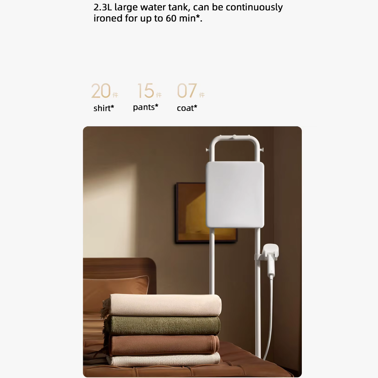 اتو ایستاده شیائومی با توان 2000 وات، بخار را با نرخ 36 گرم در دقیقه به سطح پارچه هدایت میکند.، این دستگاه قادر است در زمان کوتاهی لباسها را صاف و بدون چروک کند. این قابلیت به شما کمک میکند تا در زمان کمتری کارهای بیشتری انجام دهید.