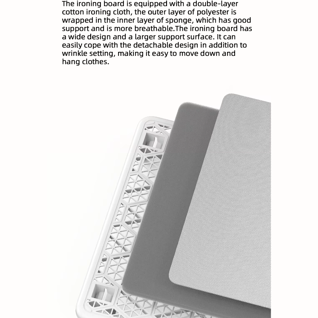 این دستگاه همراه با یک ریل لباس تلسکوپی و میز اتو طراحی شده است. ریل لباس به شما امکان میدهد لباسها را قبل و بعد از اتو کردن آویزان کنید. میز اتو نیز قابل تنظیم است و میتوانید آن را بر اساس نیاز خود تنظیم کنید. همچنین میز دارای پوشش پارچهای دولایه است که باعث افزایش کیفیت و راحتی در فرآیند اتوکشی میشود.