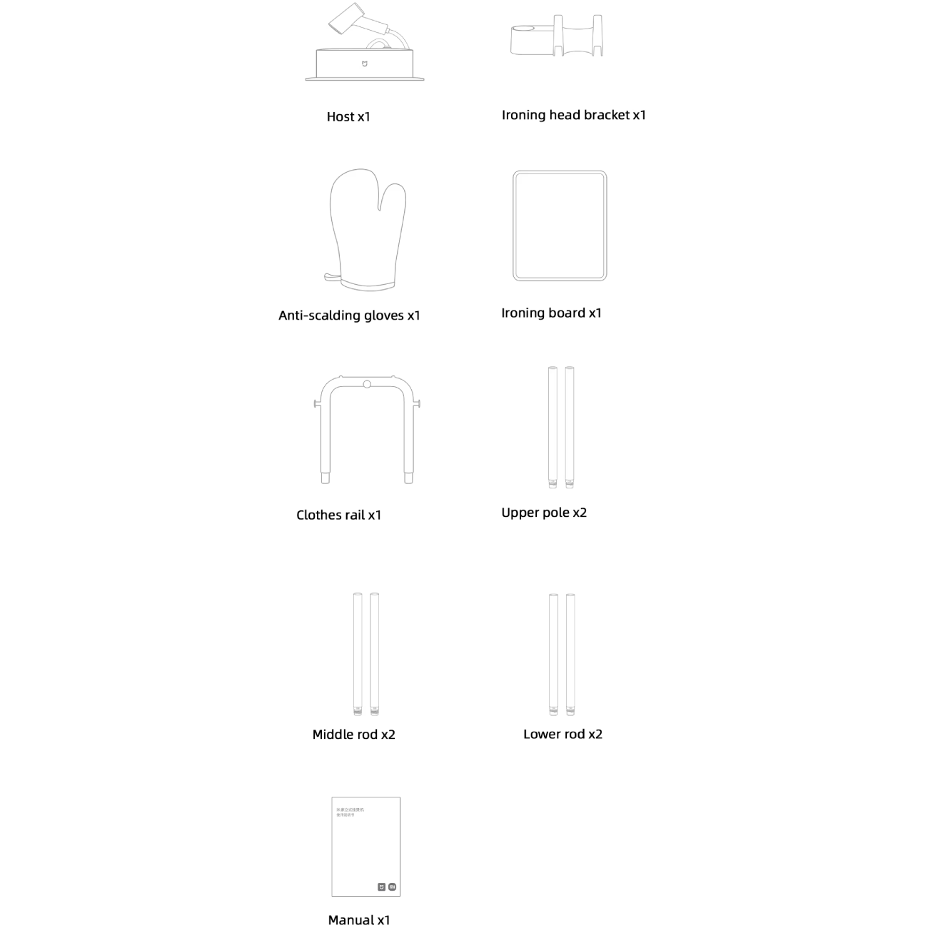 اتو بخار لباس شیائومی مدل ZQGTJ02KL همراه با یک مجموعه کامل از لوازم جانبی ارائه میشود که شامل بدنه اصلی دستگاه، سری اتوکشی، دستکش ضد حرارت، میز اتو، ریل لباس، دو میله نگهدارنده بالایی، دو میله وسط، دو میله پایینی و دفترچه راهنما میباشد. این اقلام به شما کمک میکنند تا به راحتی از دستگاه استفاده کنید، لباسهای خود را به سرعت و با دقت اتو کرده و در عین حال از ایمنی و راحتی در حین کار اطمینان حاصل نمایید.