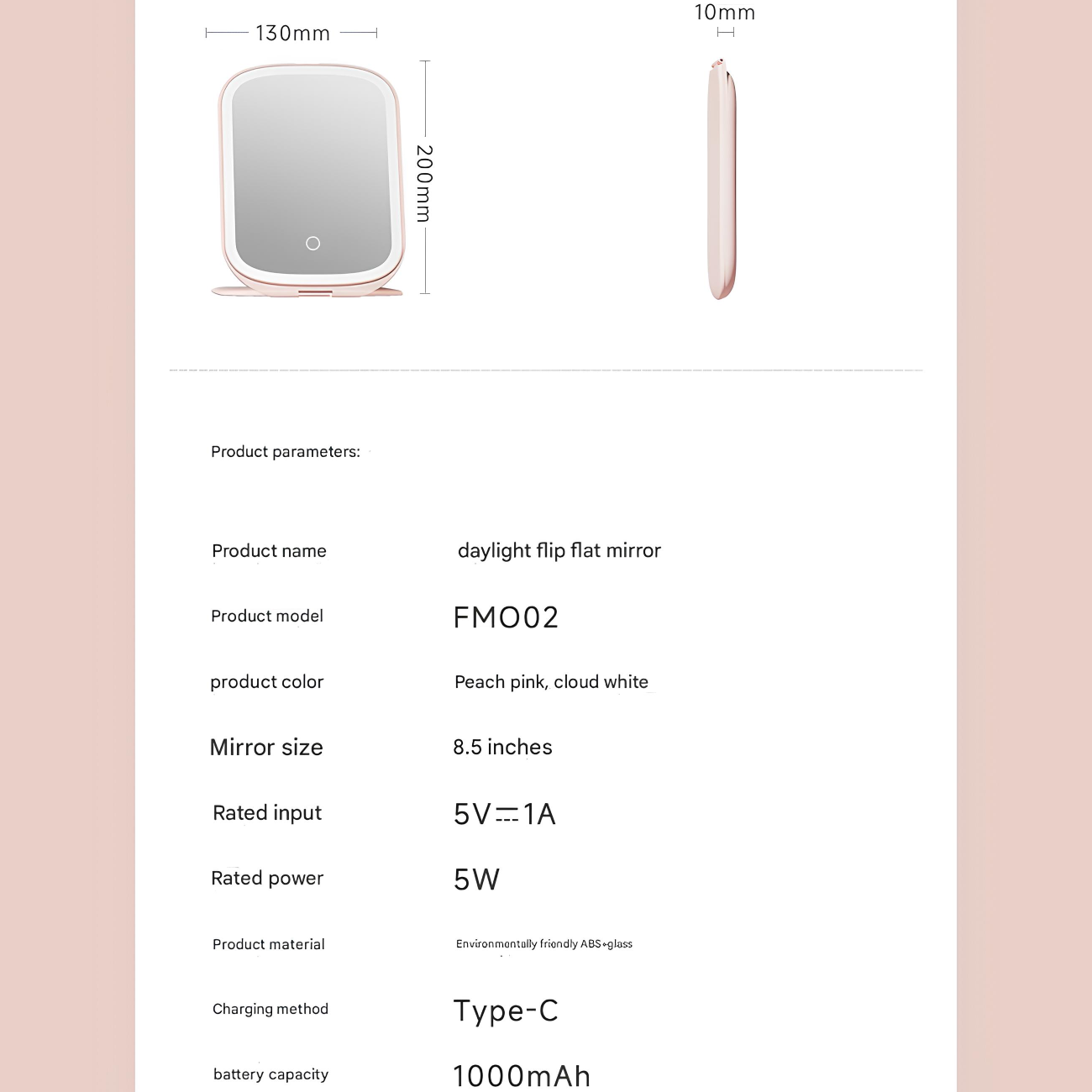 آینه شارژی شیائومی با ابعاد 10*130*200 میلیمتر و وزن سبک، به راحتی قابل حمل و نقل است. اندازه صفحه بازتابنده آن 8.5 اینچ است که فضای کافی برای مشاهده کامل صورت را فراهم میکند.