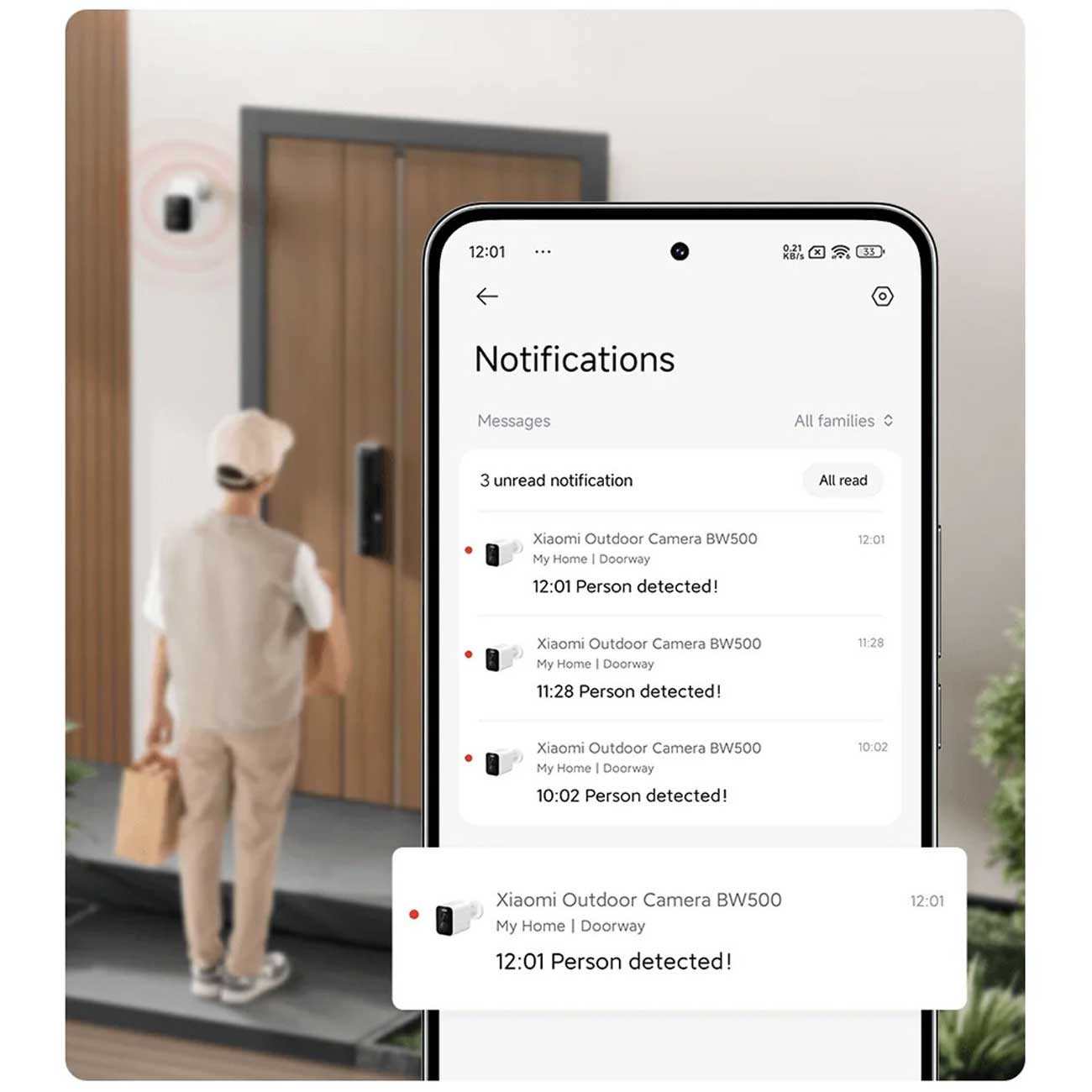 دوربین Xiaomi BW500 MJSXJ06BY مجهز به باتری 10000 میلیآمپری با ظرفیت بالا است که عملکرد طولانیمدت را تضمین میکند. این باتری قدرتمند به دوربین این امکان را میدهد که تا 180 روز (معادل شش ماه) بدون نیاز به شارژ مجدد، بهطور مداوم عمل کند. این ویژگی بهویژه در مکانهایی که دسترسی به برق محدود است یا برای نصب دوربین در نقاط دورافتاده که نیاز به نگهداری و نظارت طولانیمدت دارند، بسیار مفید است.
