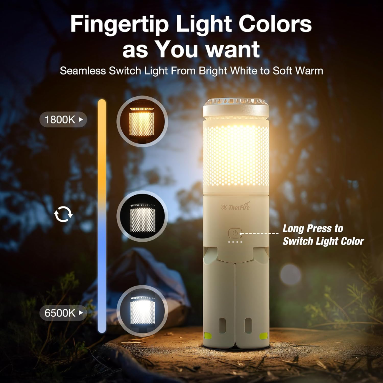 چراغ قابل حمل تورفایر دارای سه حالت روشنایی مختلف با شدت روشنایی (نور کم: 90 لومن، نور متوسط: 280 لومن و نور بسیار زیاد 450 لومن) است. همچنین، میتوانید رنگ نور را از گرم (1800K) تا سرد (6500K) تنظیم کنید تا نور مناسب برای هر شرایطی را داشته باشید.