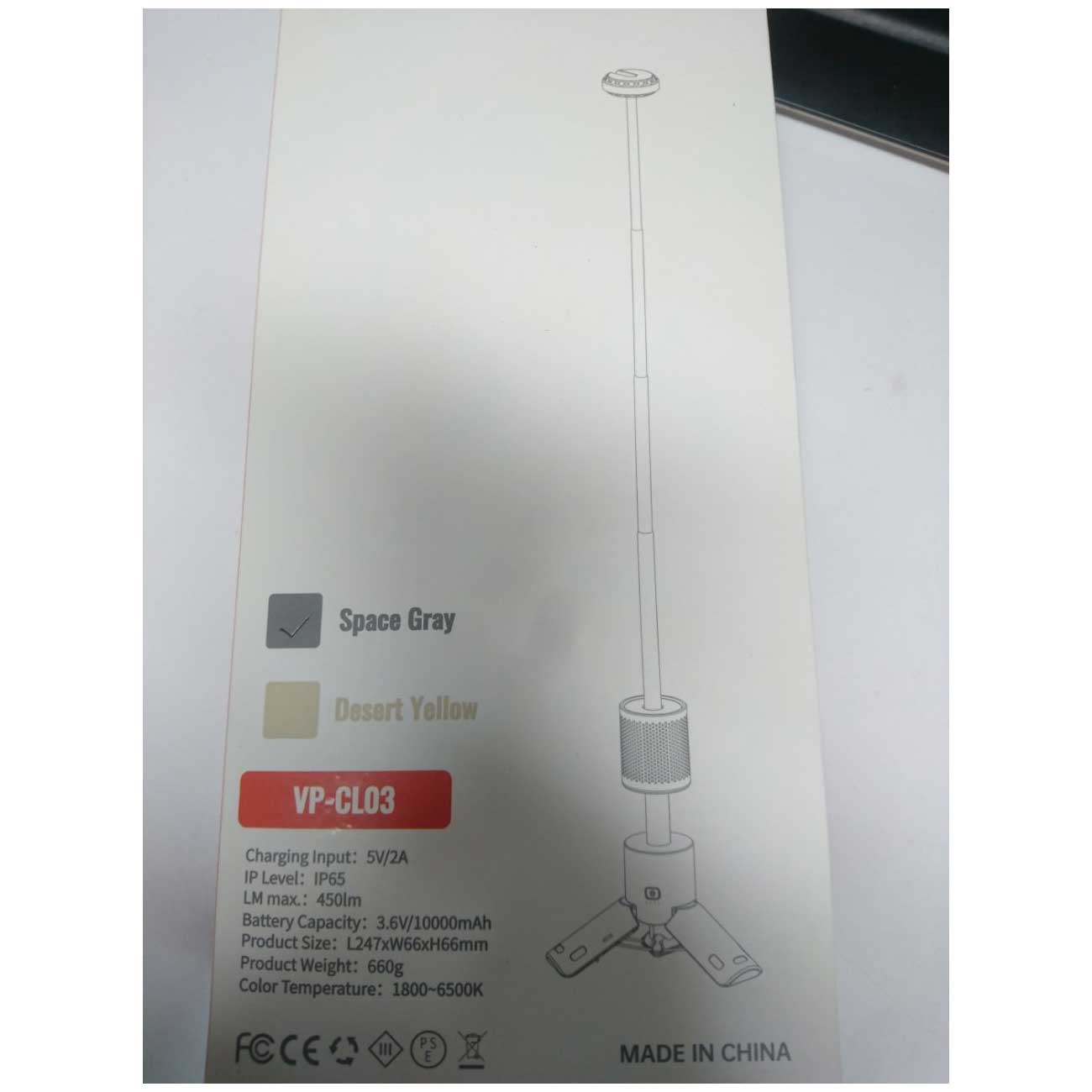 لامپ کمپینگ VP-CL03 مجهز به یک باتری داخلی با ظرفیت 10000 میلیآمپر ساعت است که میتواند به عنوان پاور بانک نیز استفاده شود. با استفاده از پورت USB-C با ورودی 5V/2A، این چراغ در مدت 4 تا 5 ساعت به طور کامل شارژ میشود و میتواند بین 9 تا 45 ساعت نور مداوم ارائه دهد. همچنین توسط همان پورت تایپسی می توانید از چراغ به عنوان پاوربانک همراه جهت شارژ گوشی موبایل خود استفاده کنید.