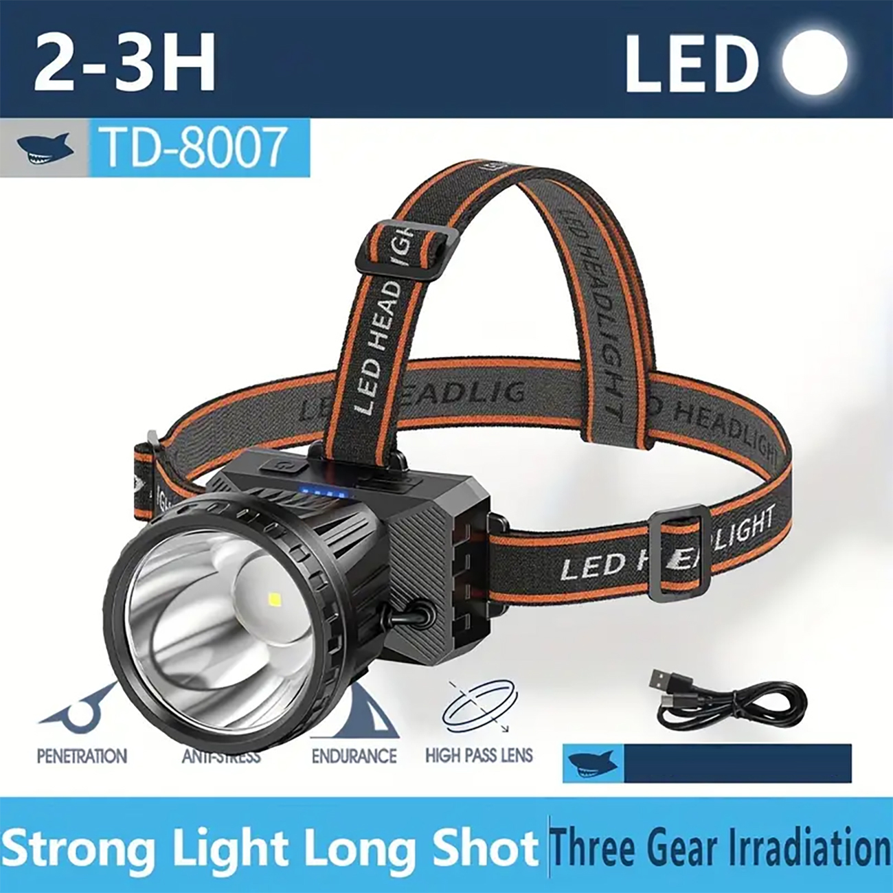 چراغ پیشانی قابل شارژ 2400 میلی آمپر ساعت با نور سفید اسمایلینگ شارک TD-8007
