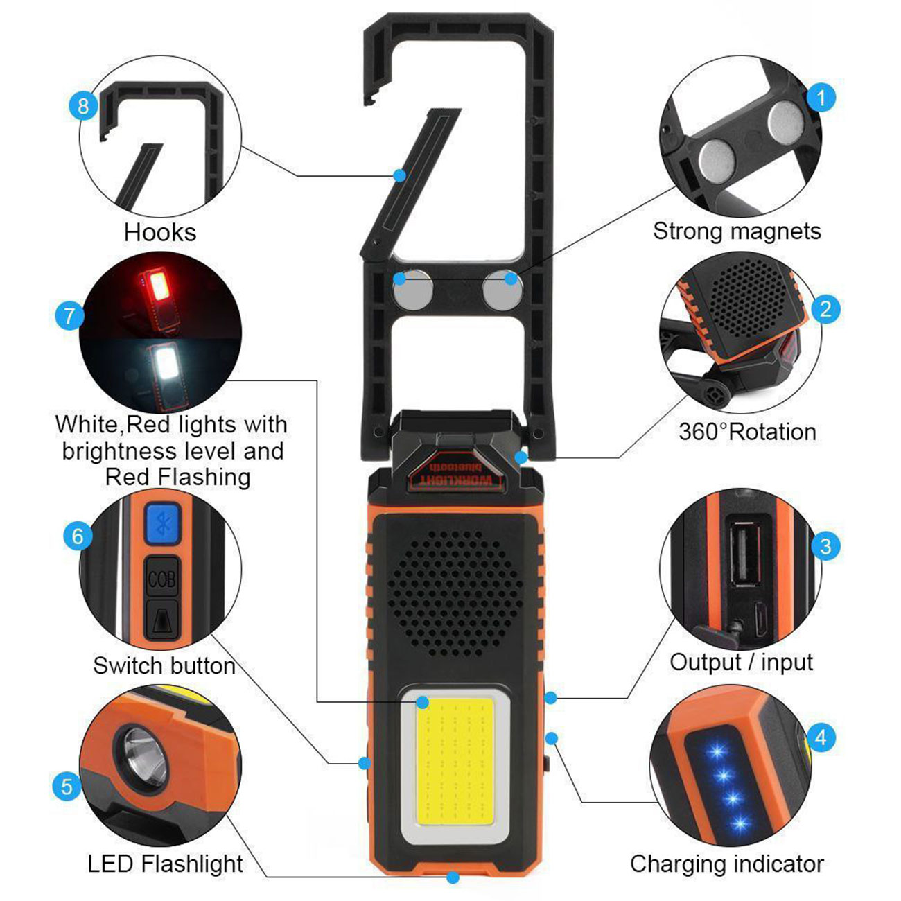 محصولی که در پیش روی شما قرار دارد، یک اسپیکر، چراغ کار، پاوربانک، چراغ قوه و در واقع یک همه کاره است! این چراغ کار اضطراری قابل شارژ است و چه در منزل، محل کار، مسافرت و مهمانی در فضای باز باشید، قابل استفاده و کاربردی است.