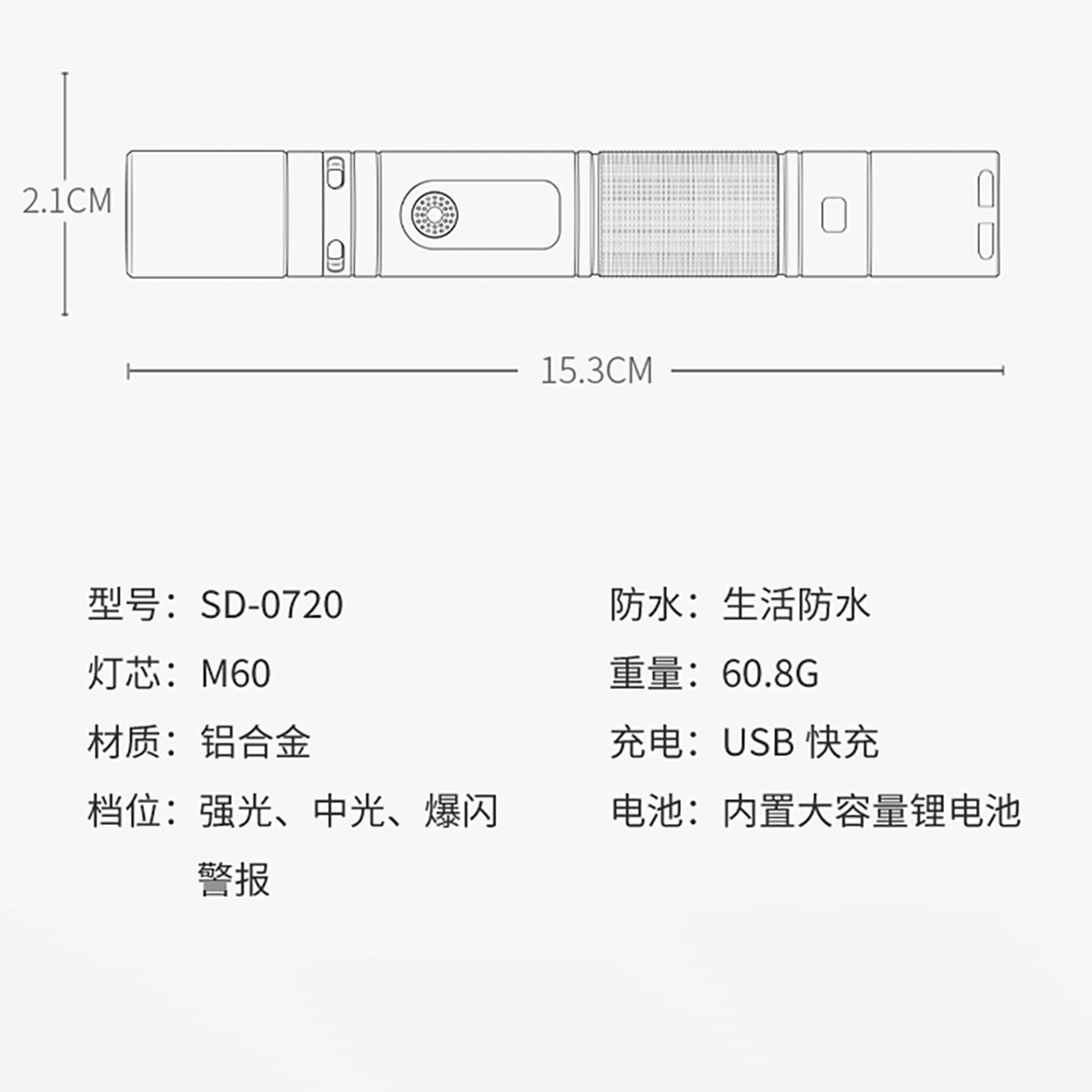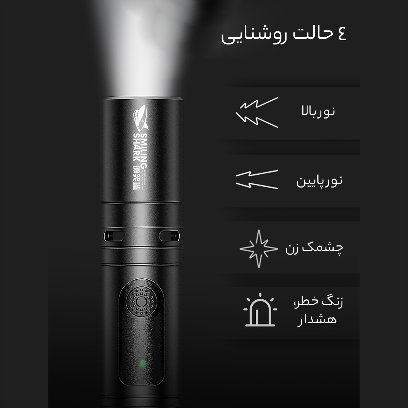 چراغ قوه و جرقه الکتریکی شارژی اسمایلینگ شارک SD-0720 ظاهر جمع و جوری که دارد نور خوبی تولید میکند و برای حمل کردن راحت و سبک است. هنگام سفر و کمپینگ هیچ نگرانی در مورد درست کردن آتش نداشته باشید، زیرا SD-0720 smiling shark electric flashlight and spark دارای جرقه الکتریکی است و به خوبی از عهده این کار برمیآید.