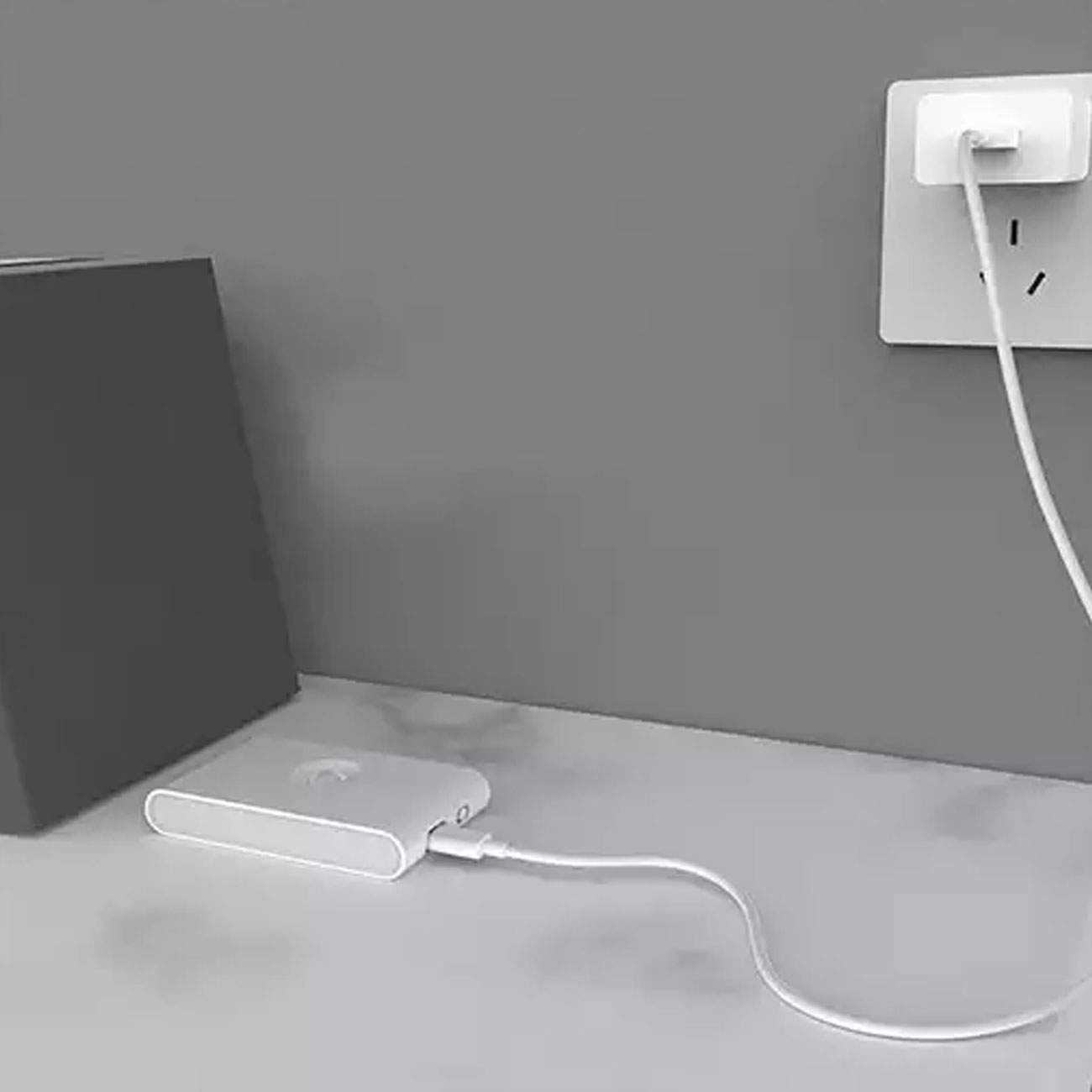 لامپ دیواری هوشمند کوتسی 89005، انرژی خود را از طریق یک باتری داخلی شارژ با ظرفیت 300 میلیآمپر تامین می کند که قابلیت شارژ از طریق کابل تایپ سی همراه محصول با ولتاژ 5V را دارد. با یکبار شارژ کامل باتری لامپ در حدود 21 ساعت در حالت روشن می تواند کارکرد داشته باشد.