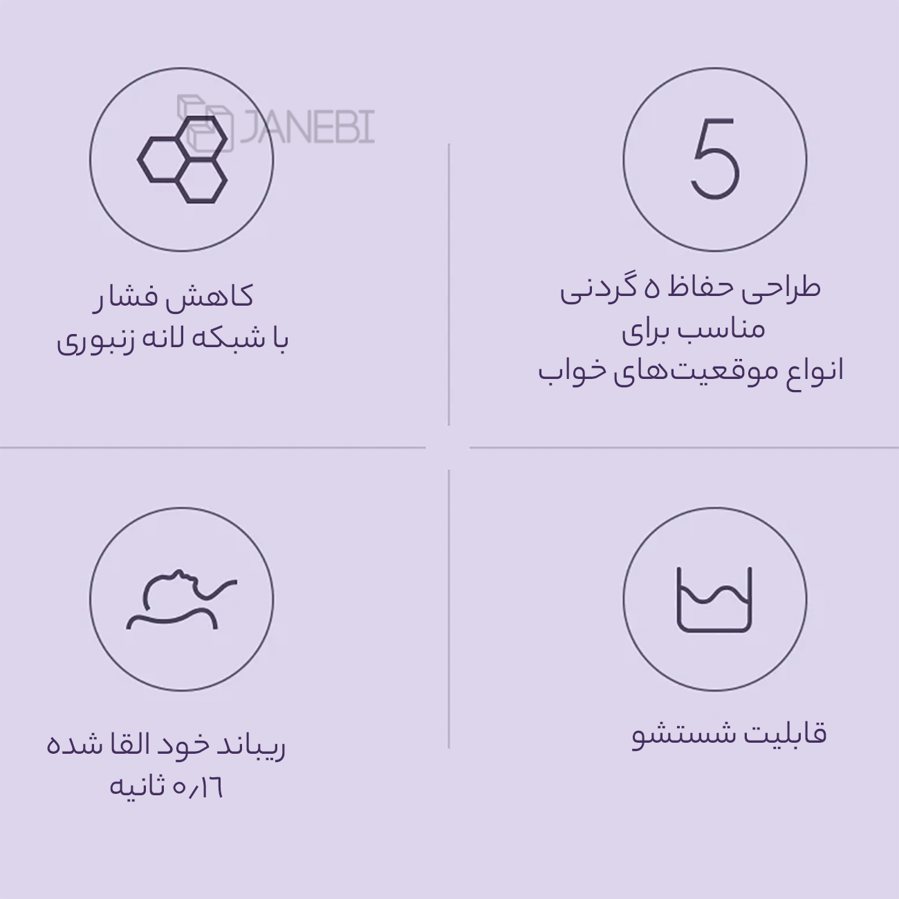 طراحی دو ناحیه با ارتفاعهای مختلف موجب شده تا بتوانید راحت ترین حالت خواب را انتخاب کنید. ارتفاع کم برای دوستداران بالشهای کوتاه و پشت خواب است. ارتفاع بیشتر برای دوستداران بالشهای بلند بوده و مناسب برای خوابیدن بر پهلو طراحی شده است.