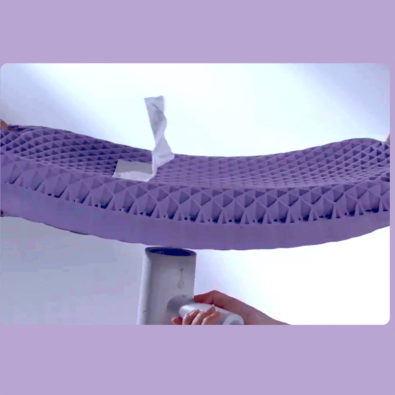 مواد پرکننده در لمس دلپذیر است، غیر چسبنده، بی بو و دارای خاصیت ارتجاعی و کشسانی بالایی است. ساختار الماسی شکل قاب باعث افزایش گردش هوا میشود، به همین دلیل عرق و رطوبت فورا تبخیر میشوند و محیطی برای باکتریها در داخل بالش ایجاد نمیشود. این ماده بدون تغییر شکل یا تغییر منقبض میشود.