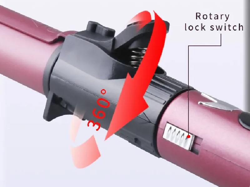 دسته قسمت جلویی دستگاه فر کننده میتواند 360 درجه بچرخد که استفاده از آن راحت و ساده بدون قفل است و حتی افراد تازه کار نیز به راحتی میتوانند آن را کنترل کنند. همچنین یک سوئیچ دکمهای جهت قفل کردن چرخش 360 درجه روی بدنه تعبیه شده است.