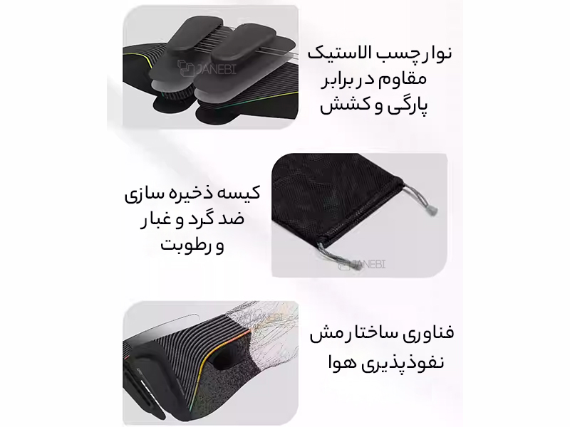| جنس | پارچه AIRKNIT، 100٪ پلی استر/ مواد پلی اتیلن انعطاف پذیر |