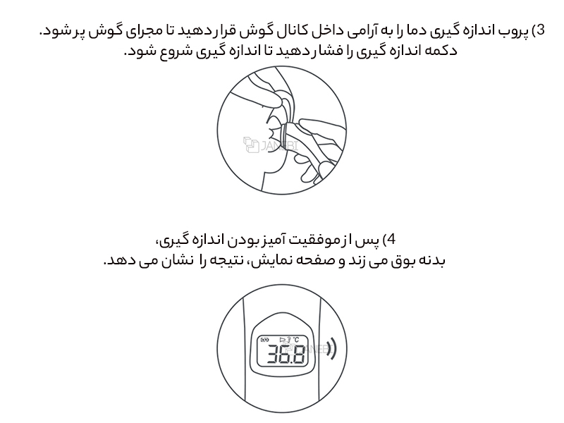 | مدت زمان اندازه گیری در گوش | یک ثانیه |