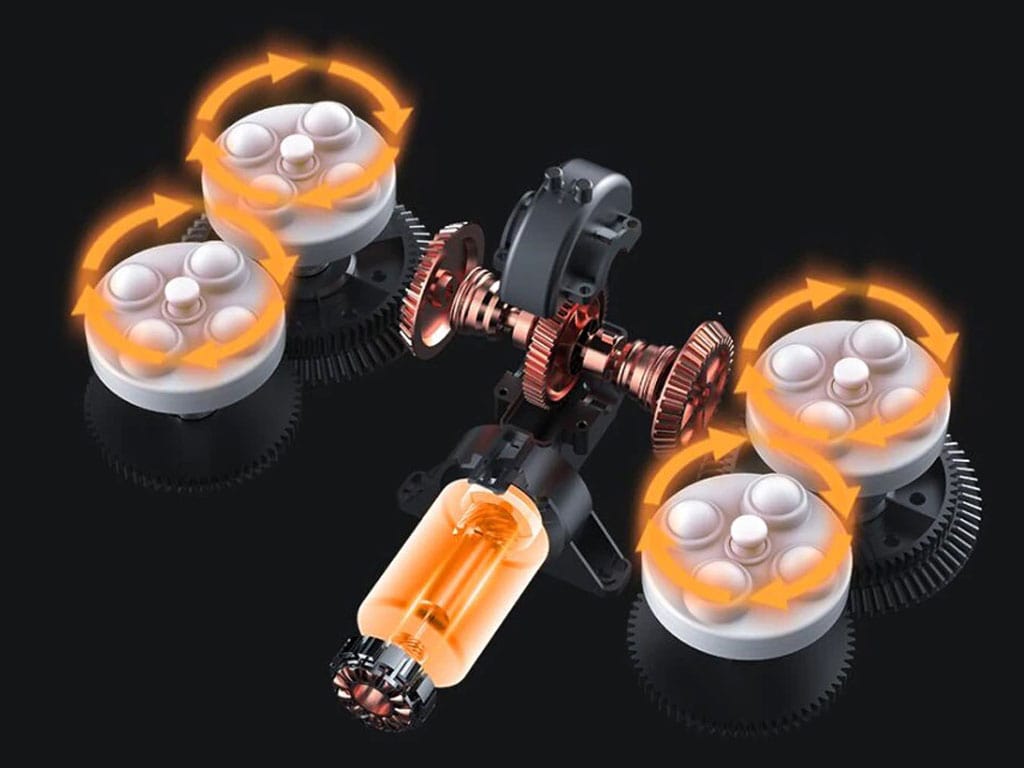 زیر هر کدام از پاها دو غلتک وجود دارد که هر کدام از آنها دارای پنج برآمدگی برای ماساژ کف پاها هستند و مهمترین نقاط پاها را ماساژ میدهند. کاملا بیسرصدا است و مزاحمتی برای دیگران ایجاد نمیکند.