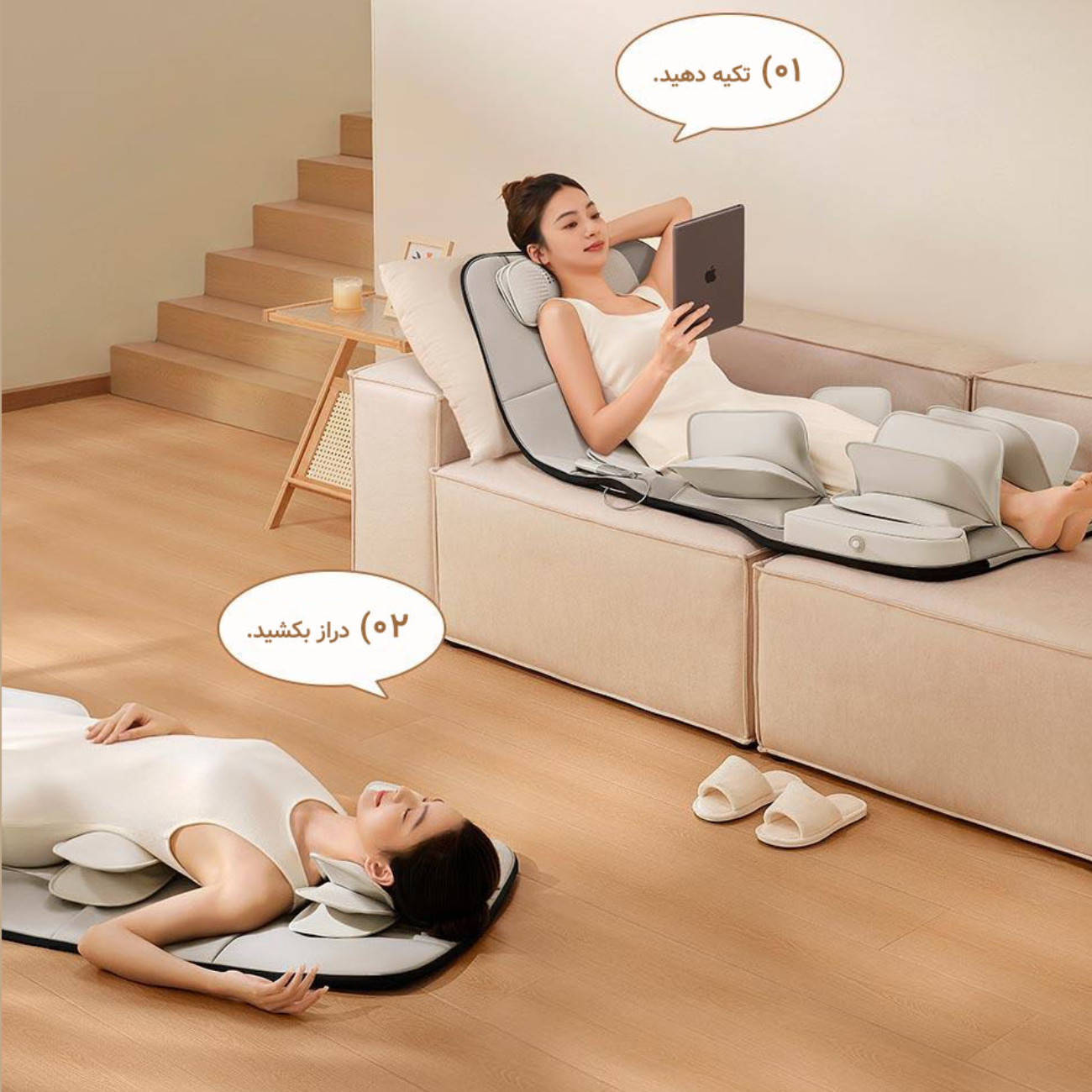 - چندین کاربرد در یک دستگاه: میتوانید روی آن بنشینید یا دراز بکشید و از تجربه یک ماساژ کامل لذت ببرید.