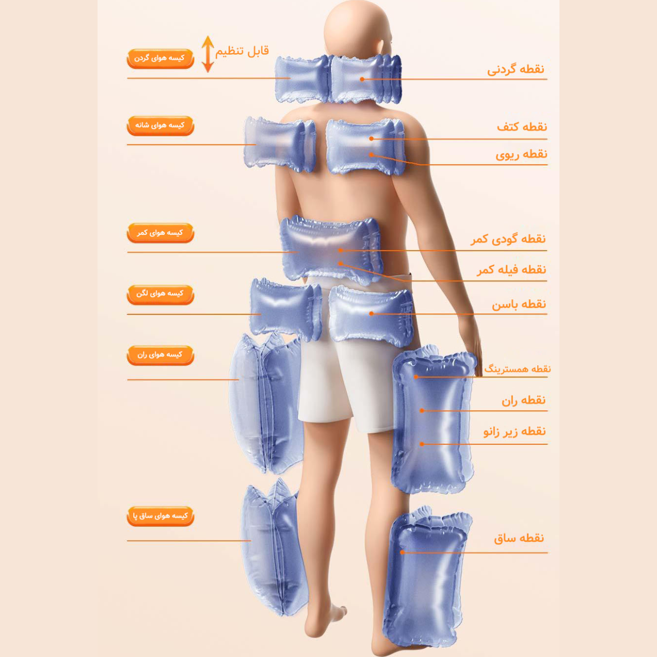 - 28 ایربگ منطقهبندیشده: ماساژ بدن بهطور یکنواخت، بدون تحریک یا درد.