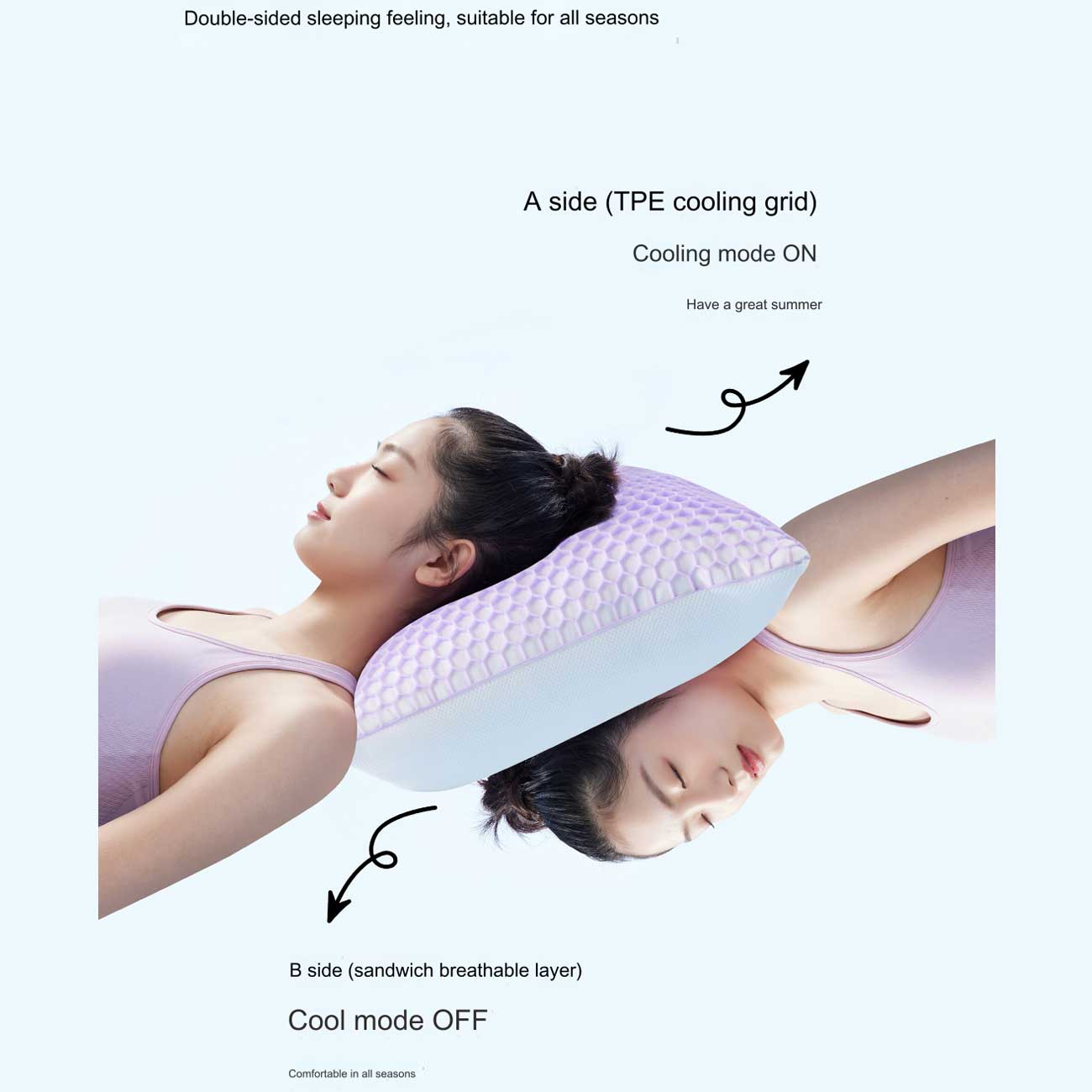 شیائومی هسته بالش خاصیت ارتجاعی و نرمی بالایی دارد. بالش میتواند منحنی فیزیولوژیکی طبیعی گردن را پشتیبانی کند و فشار وارده بر ستون فقرات گردنی را در هنگام خواب کاهش دهد. مواد پرکننده در لمس دلپذیر است، غیر چسبنده، بی بو و دارای خاصیت ارتجاعی و کشسانی بالایی است. ساختار الماسی شکل قاب باعث افزایش گردش هوا میشود، به همین دلیل عرق و رطوبت فورا تبخیر میشوند و محیطی برای باکتریها در داخل بالش ایجاد نمیشود. این ماده بدون تغییر شکل یا تغییر منقبض میشود.