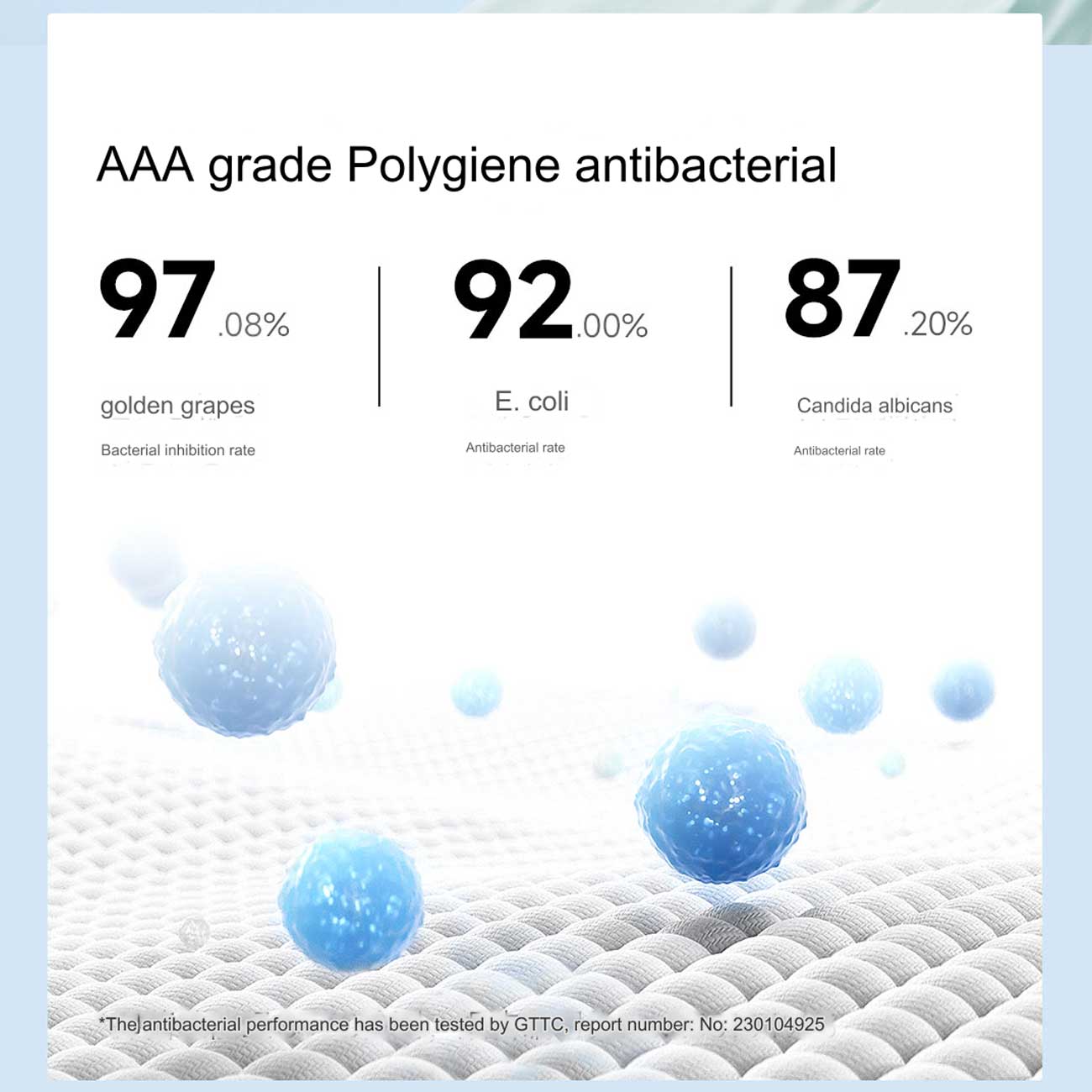 این محصول سلامتی شیائومی دارای قابلیت ضد باکتری هم هست و محافظت بیش از 97% در برابر باکتریها ایجاد میکند. این ترکیب حتی پس از شستشوهای متعدد در پارچه باقی میماند و برای سلامتی بیخطر است.