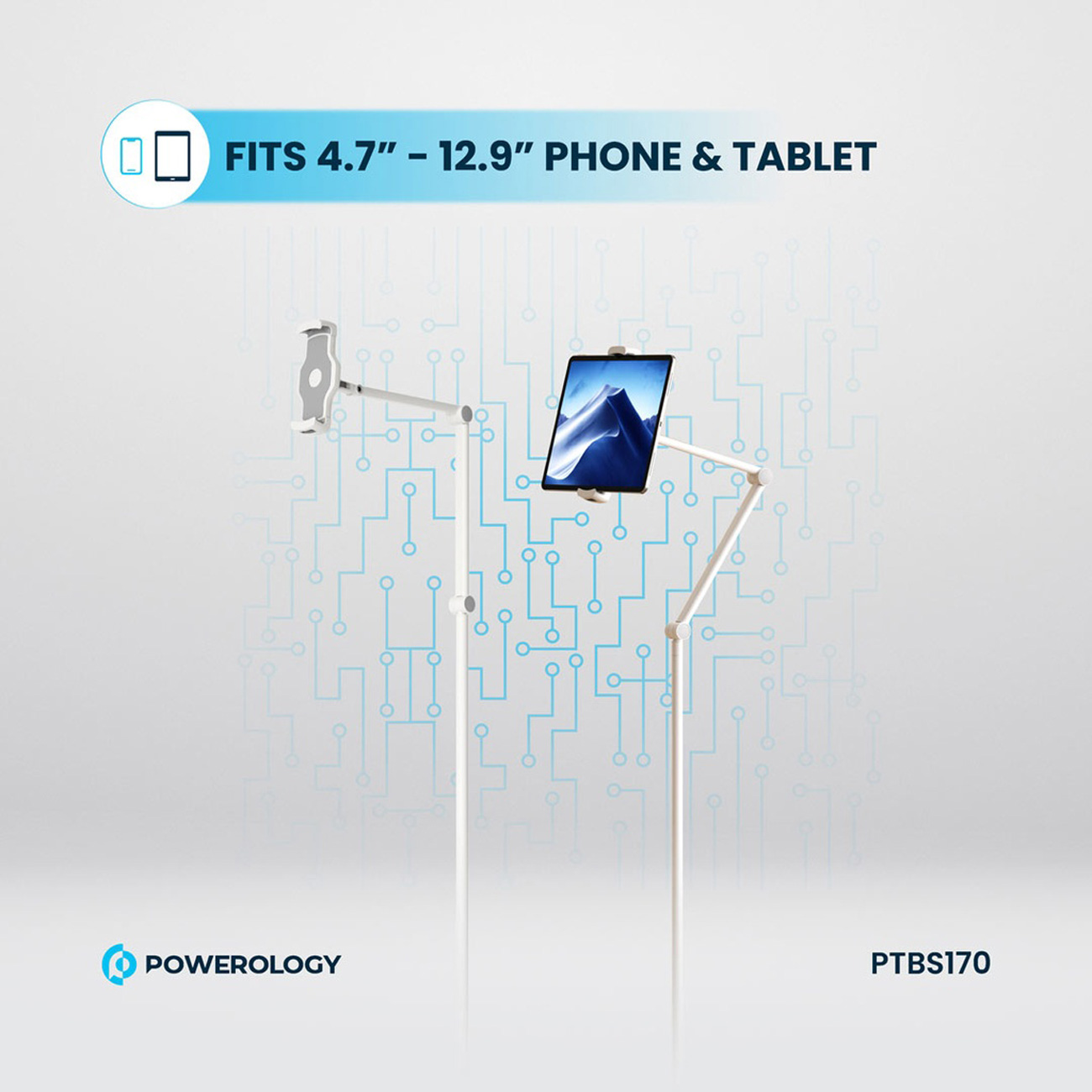 هولدر موبایل و تبلت فلزی بازو بلند 170 سانتی متری پاورولوژی PTBS170WH