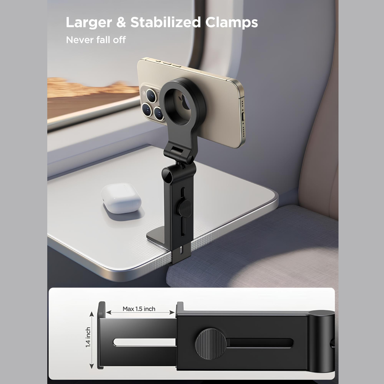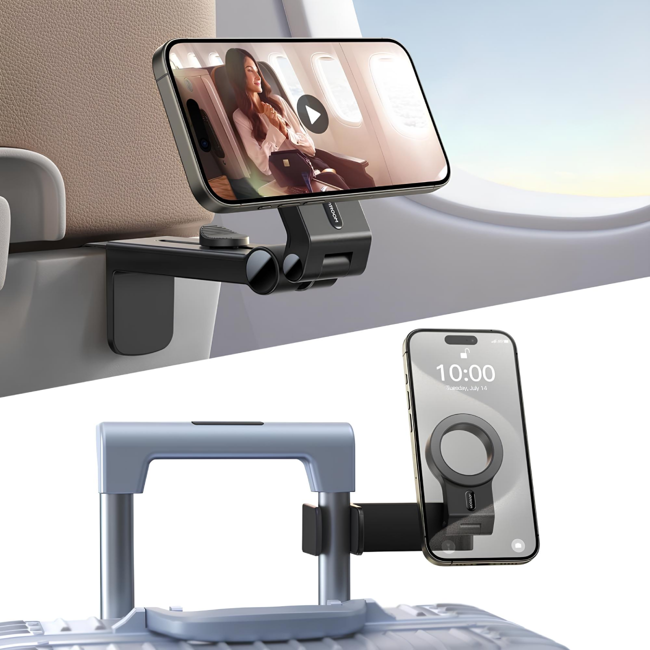 با طراحی هوشمندانه، استند گوشی جویروم به شما این امکان را میدهد که به سادگی و با یک دست تلفن خود را در جای خود قرار دهید. این ویژگی، بهویژه در طول پرواز که ممکن است دست شما مشغول باشد، بسیار مفید است.