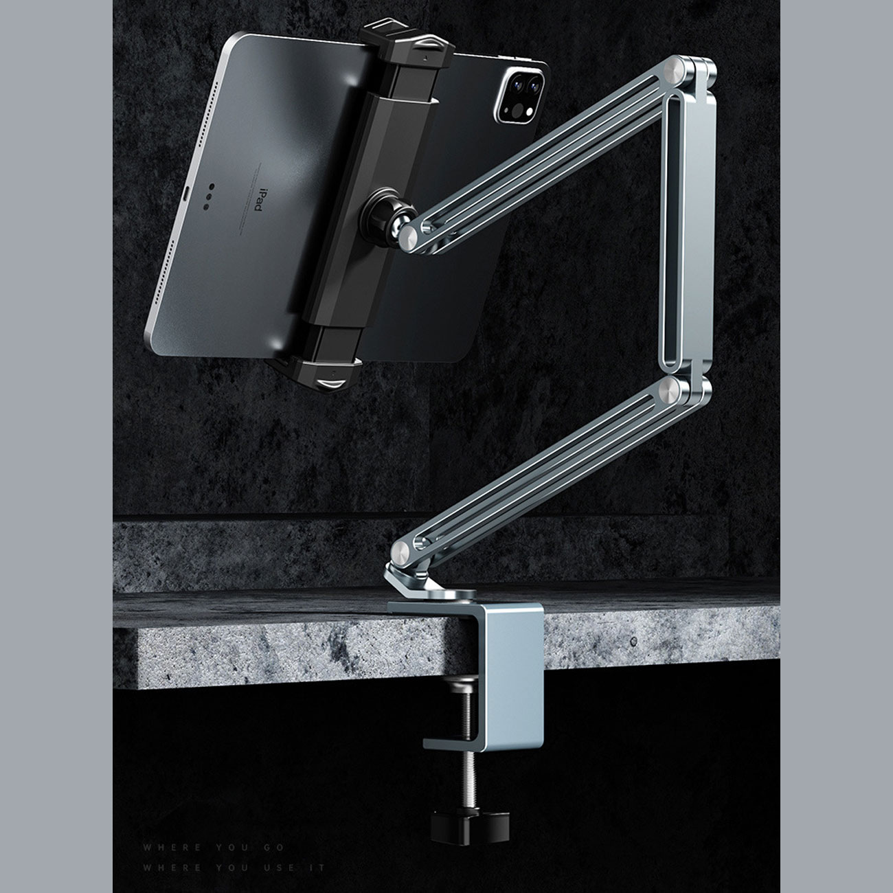 استند رومیزی را به راحتی به هر سطوح صافی میتوان متصل کرد؛ این هولدر به وسیله یک قفل به گوشه میز با هر ضخامت و جنسی محکم میشود و تکان نمیخورد.