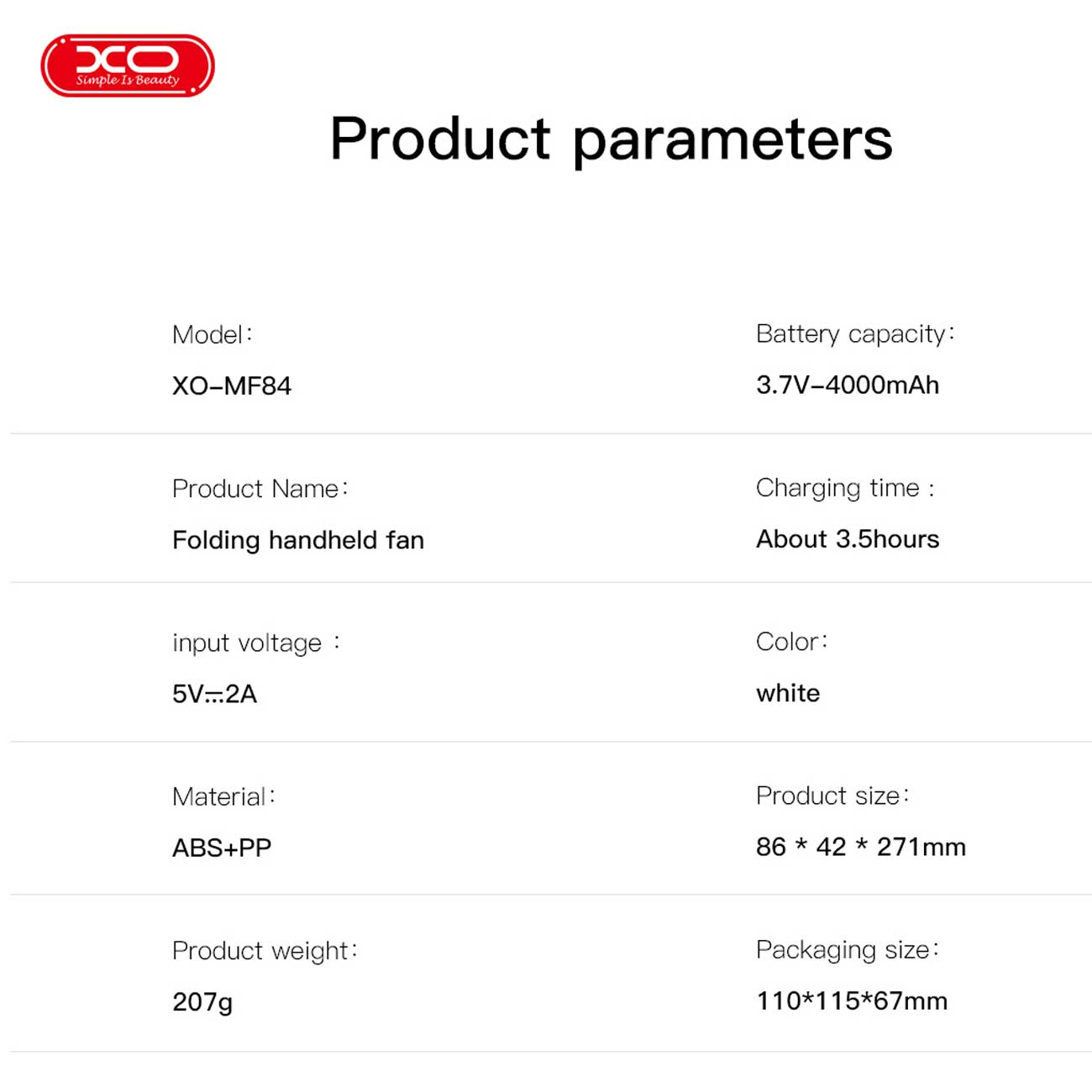 XO MF84 Charging Power Folding Handheld/Stand Fan 4000mAh
