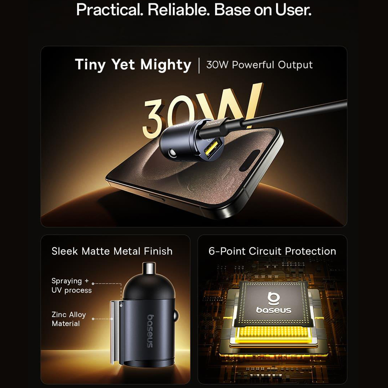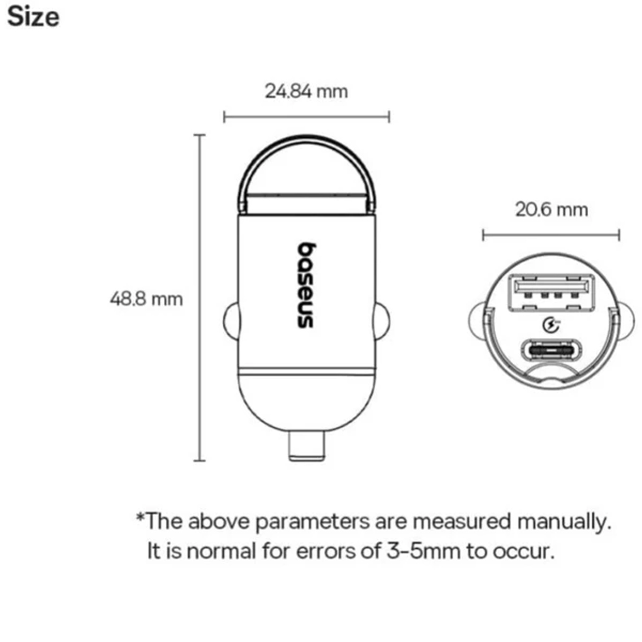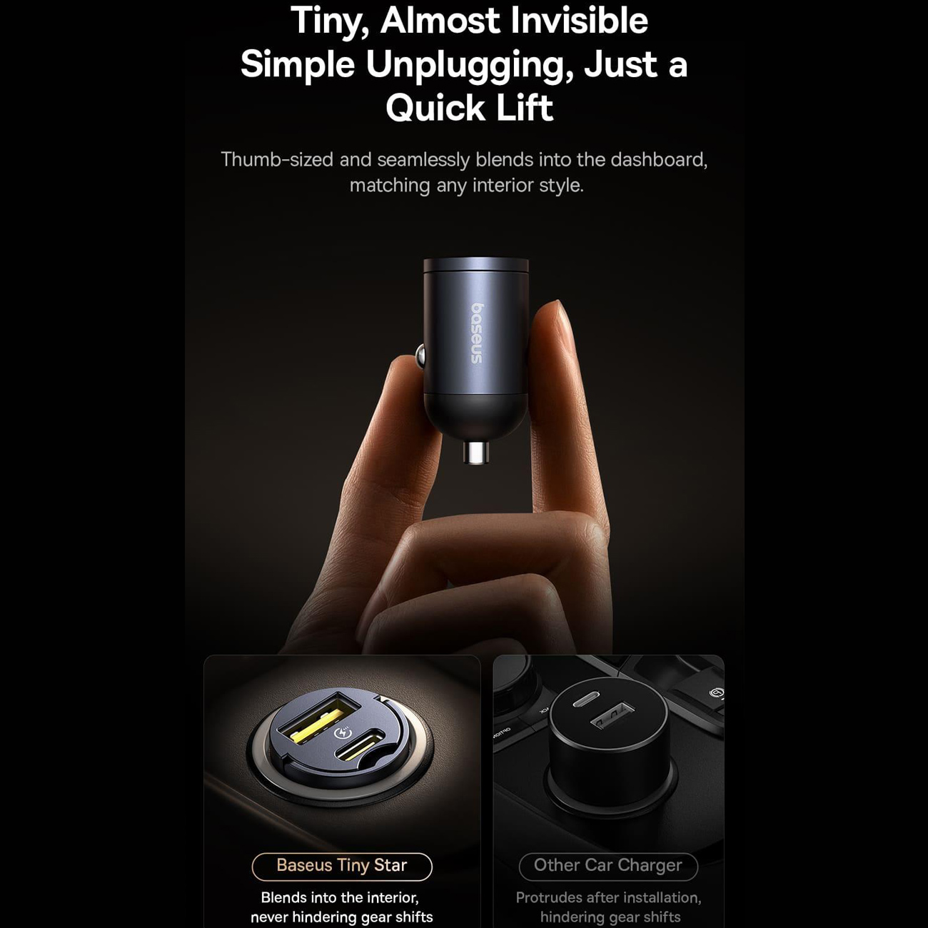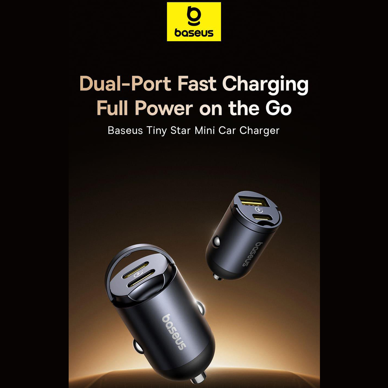 Baseus Tiny Star Car Charger, 30W, 3A, 1 x USB-A - 1 x USB-C, C00035001121-02