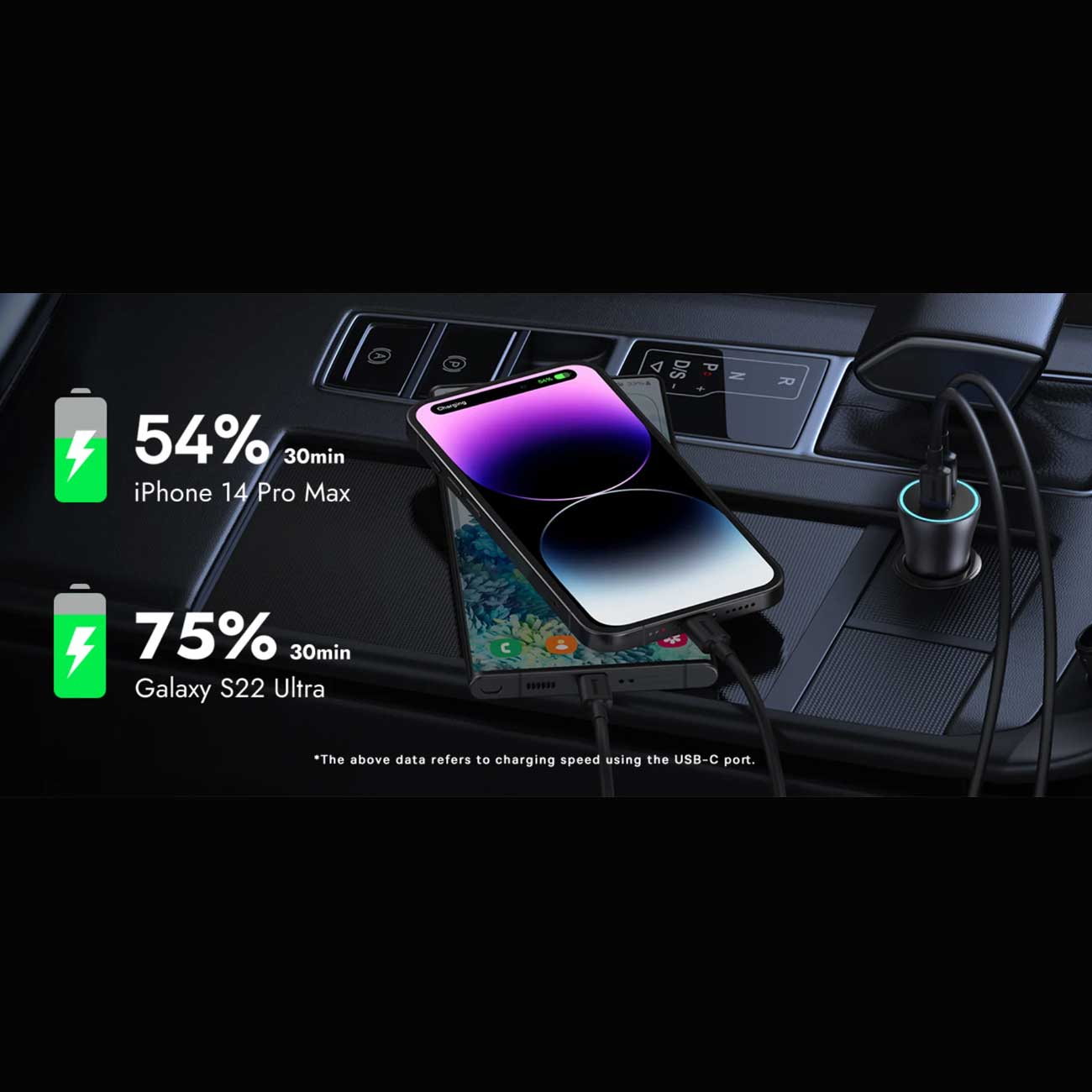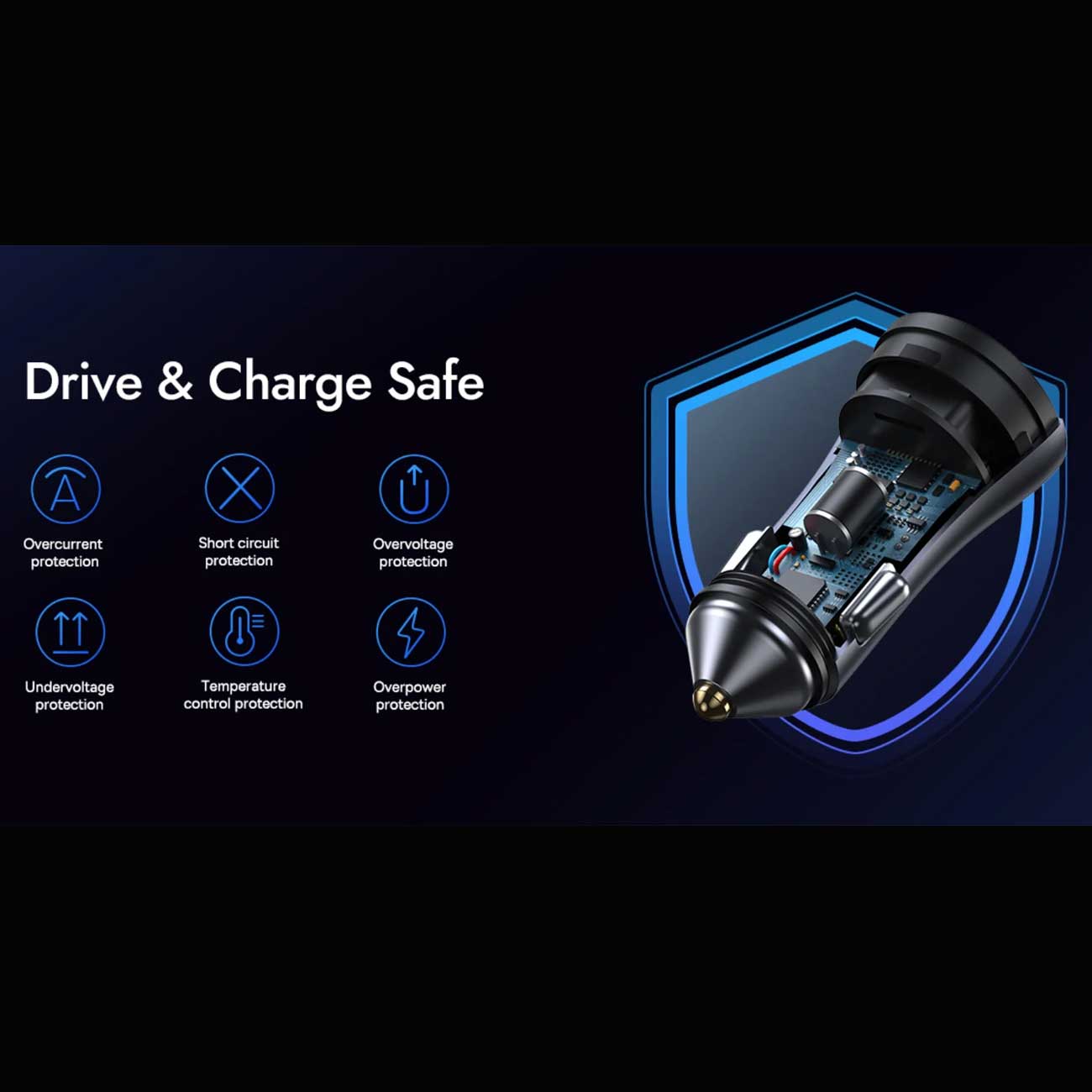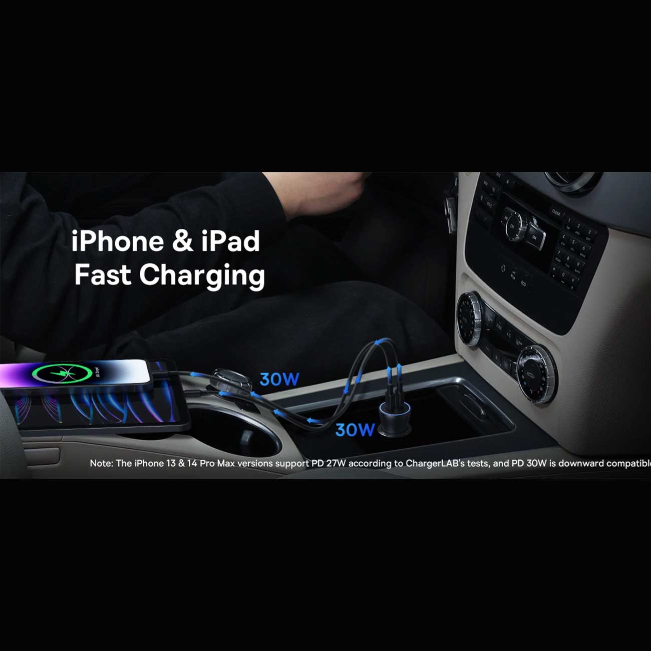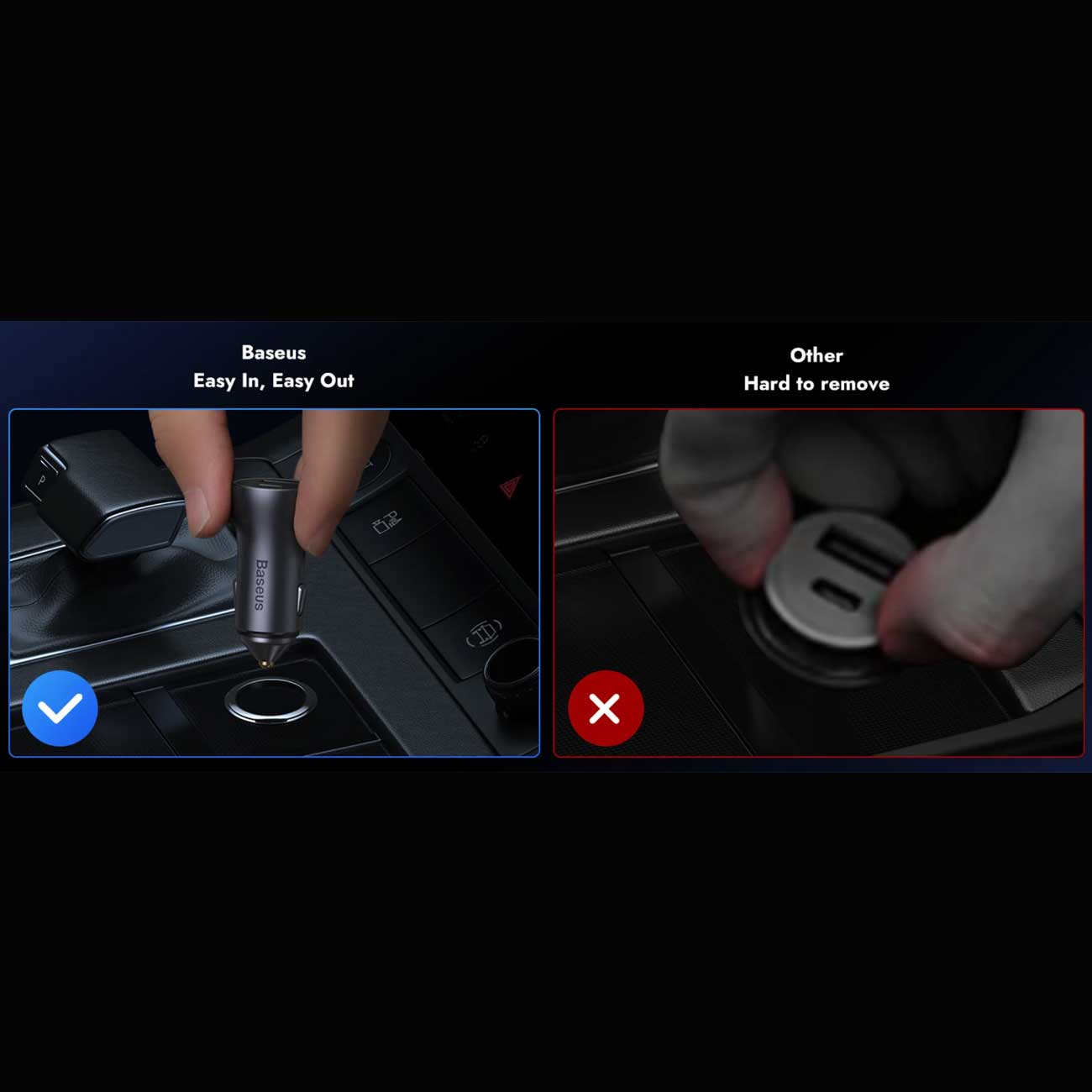 شارژر فندکی فست شارژ ماشین تایپسی 60 وات بیسوس CGJM000213
