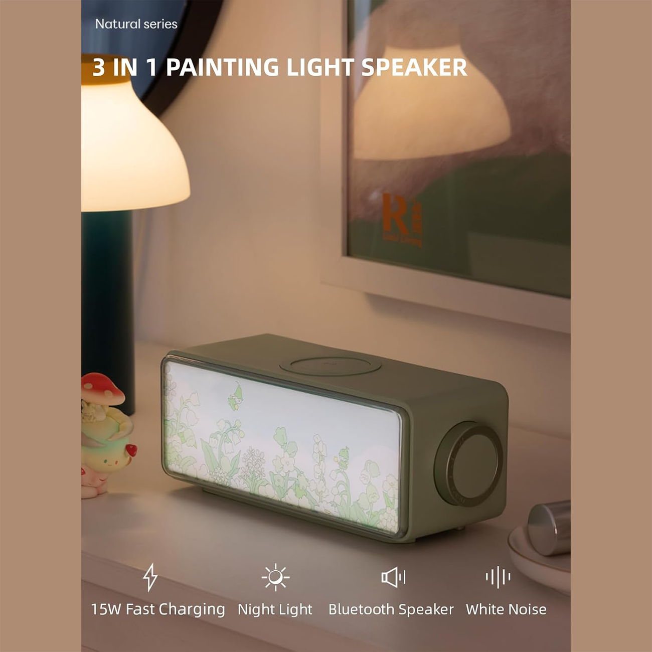 Bluetooth 5.3 speaker, night light and 15-watt wireless charger PAINTING LIGHT SPEAKER F05