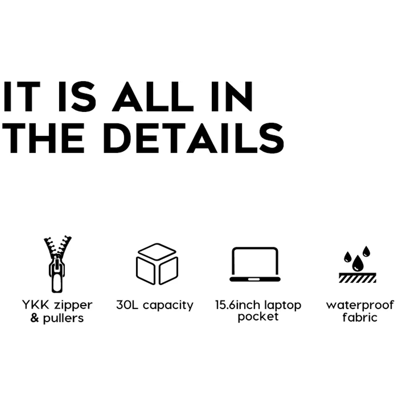 | سایر ویژگی ها | ساختار پشتی honeycomb سهبعدی، بندهای قابل تنظیم ارگونومیک، دسته نرم، زیپهای YKK، طراحی unisex، مناسب تمام فصول |