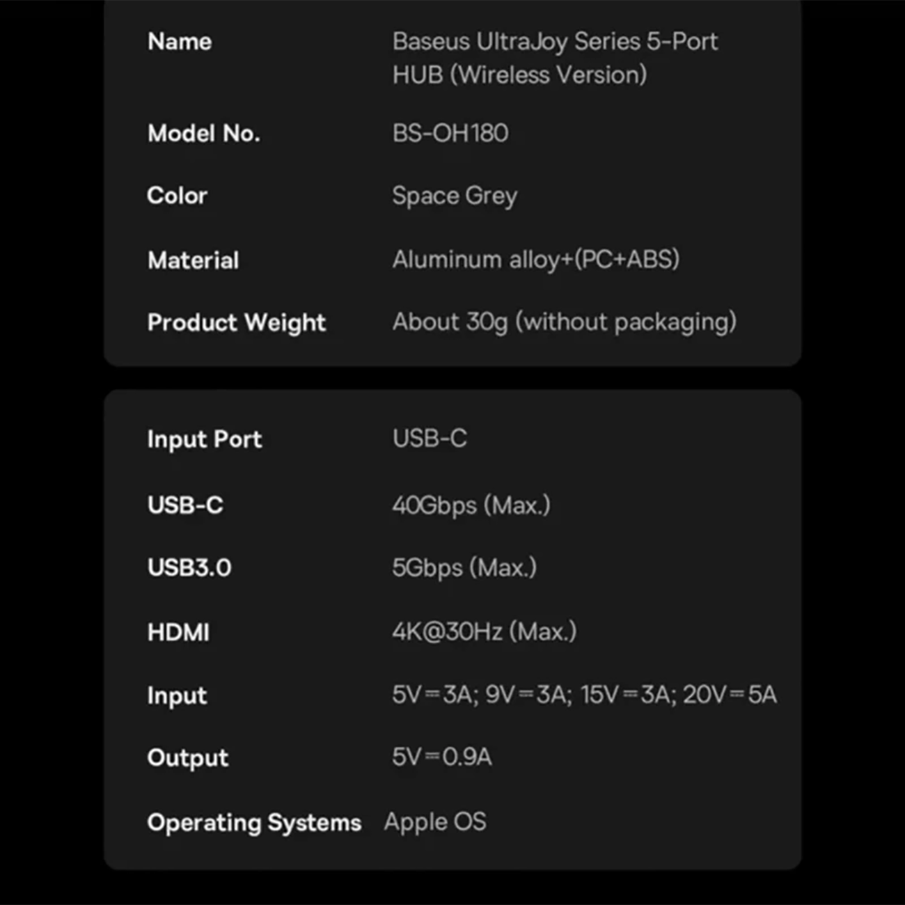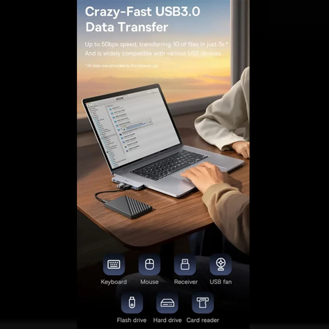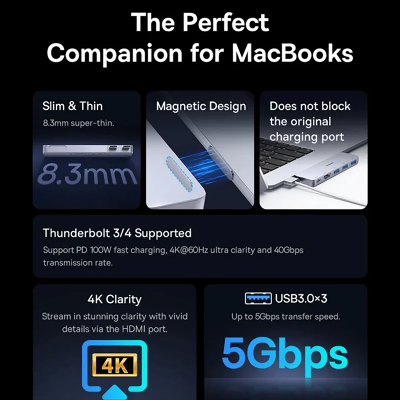 Baseus BS-OH180 Direct Link Type Hub 5-port 3xUSB-3.0 + 1xHDMI+1×USB-C