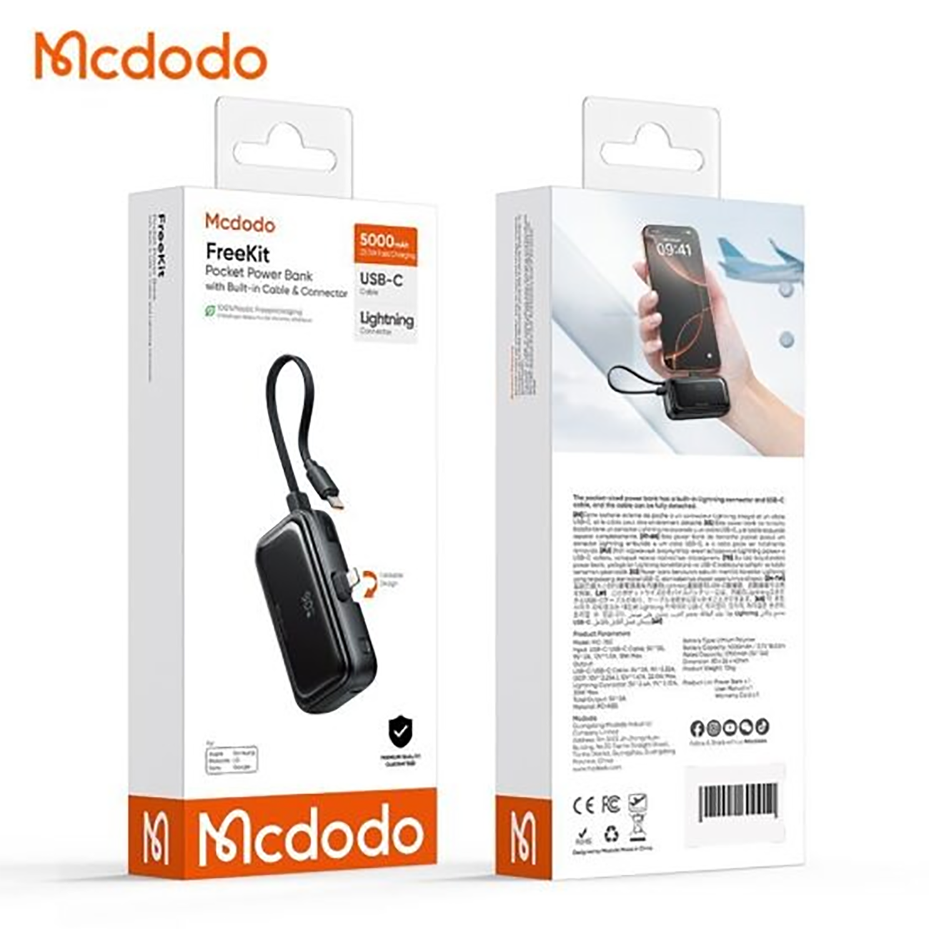 پاوربانک 5000 لایتنینگ و تایپسی 22.5 وات مک دودو MC-7800