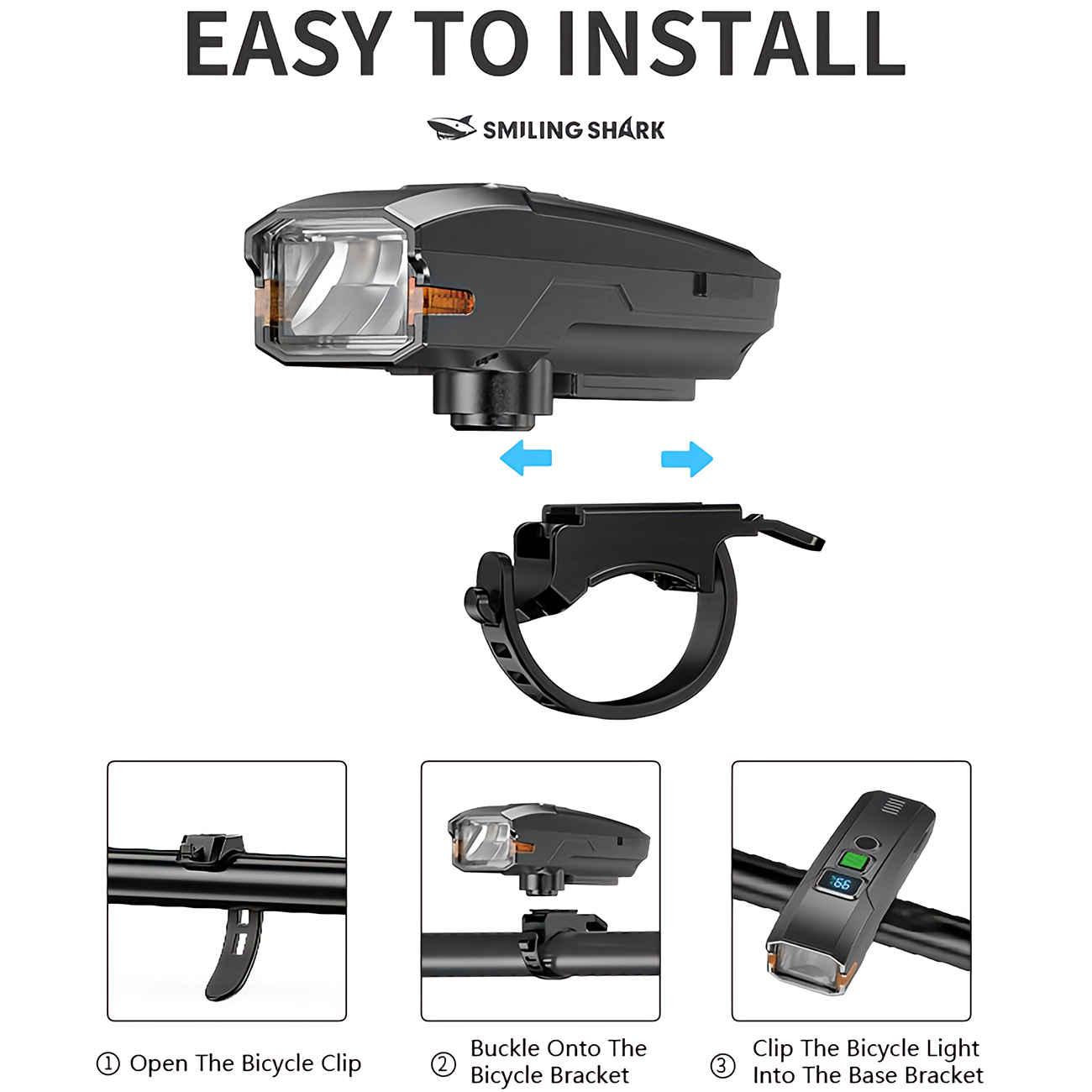 چراغ هوشمند دوچرخه اسمایلینگ شارک Smiling Shark QXD435 شارژی و ضدآب با بوق هشدار و کنترل خودکار نور