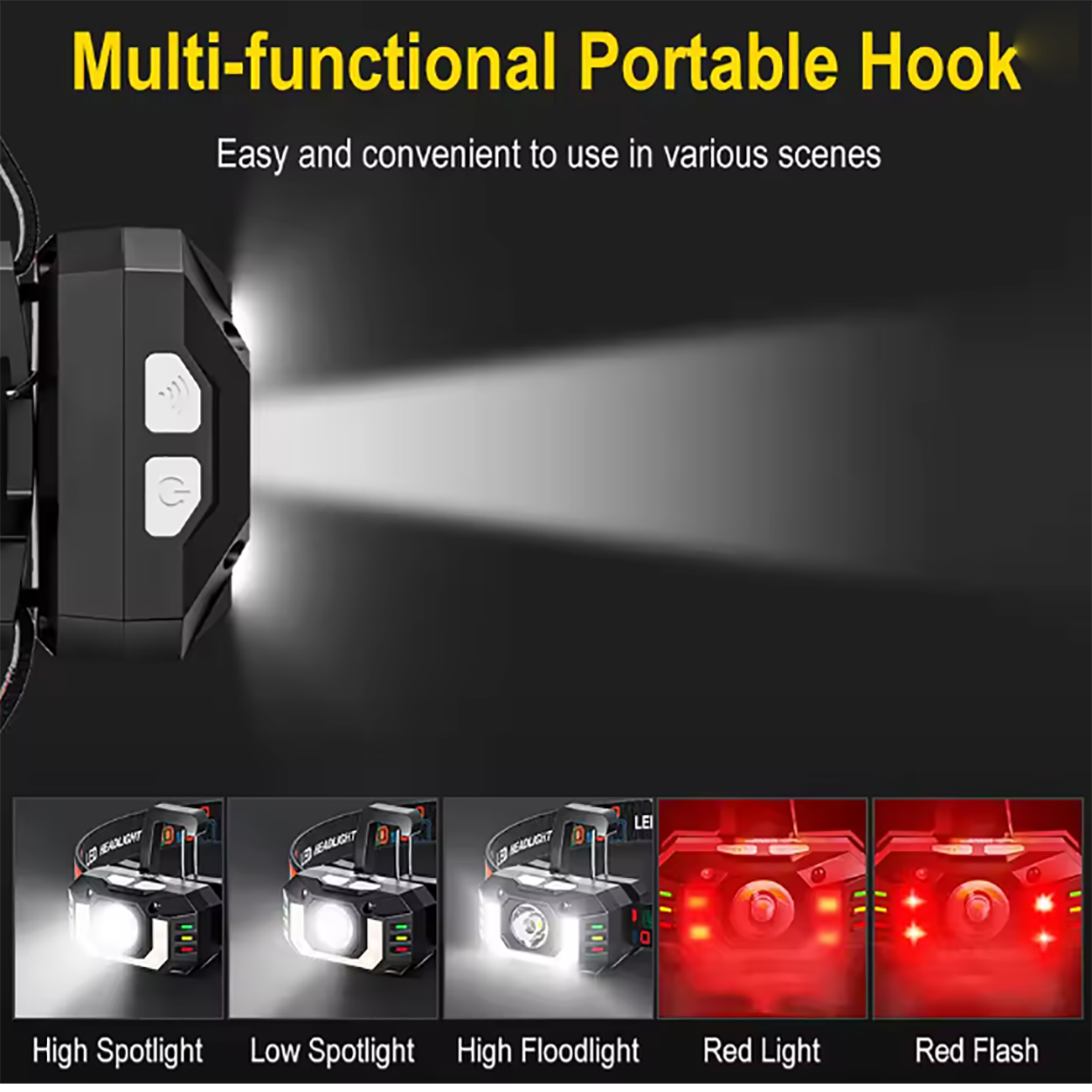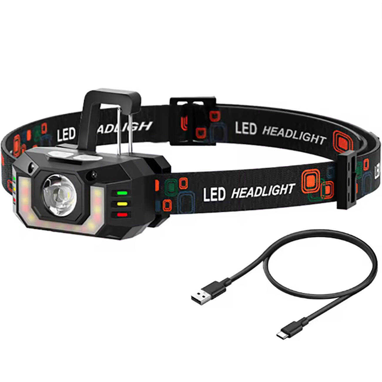 Smiling Shark TD0189 LED Head Lamp Portable Super Bright Keychain Light Type-c Rechargeable Headlight with Red Light Warning lights Waterproof