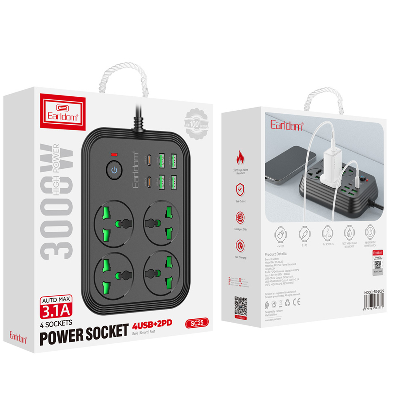 Earldom ES-SC25 Power Socket 4USB+2PD 3000W