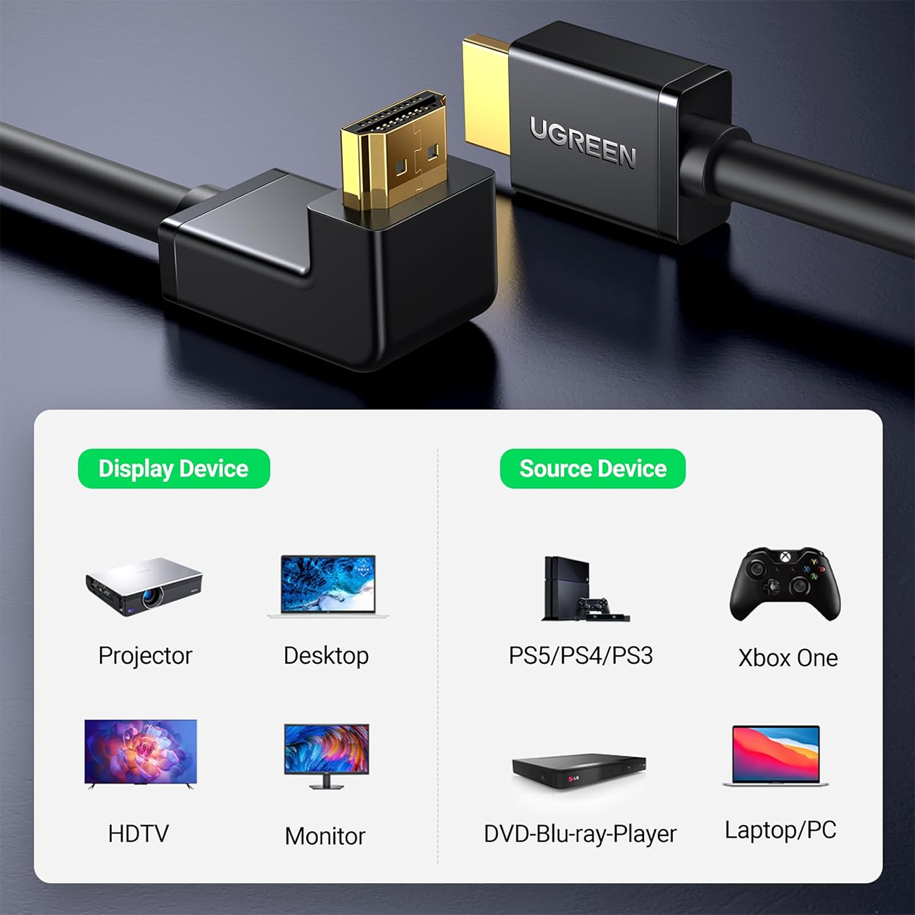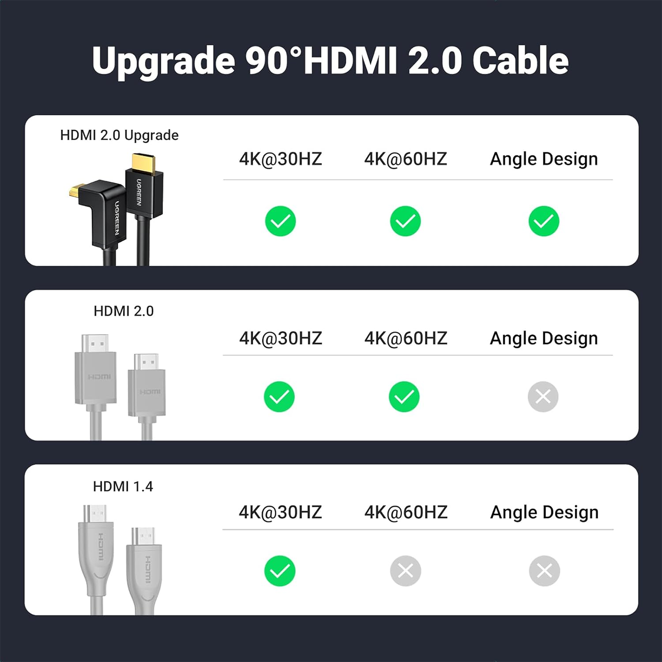 UGREEN HD103 10173 HDMI Cable Right Angle 4K 90 Degree