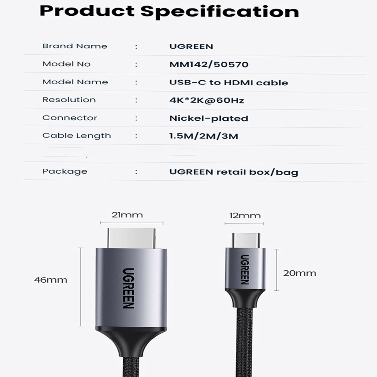 کابل تبدیل تایپسی به HDMI یک و نیم متری یوگرین ugreen MM142 50570