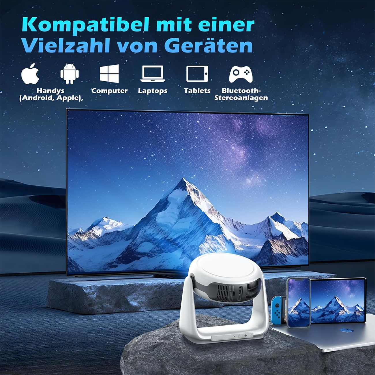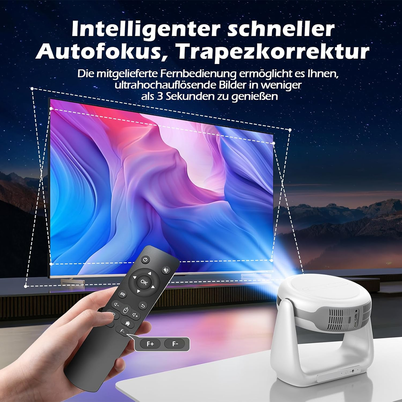 Projector Outdoor Projector with Auto Focus for Home Cinema, Supports 1080P Full HD and 4K