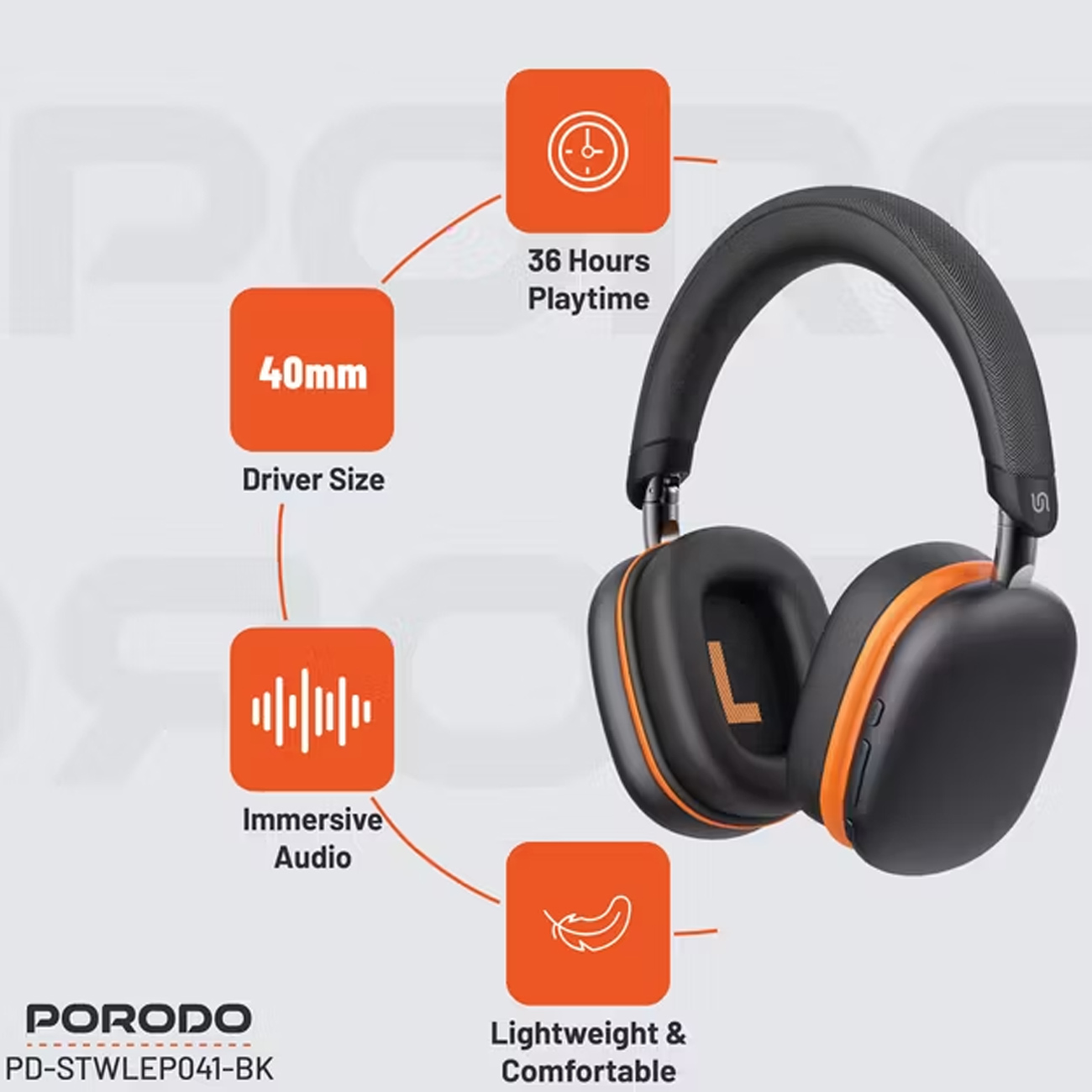 Porodo Soundtec Vibe Wireless Headphone PD-STWLEP041-BK/PD-STWLEP041-CR