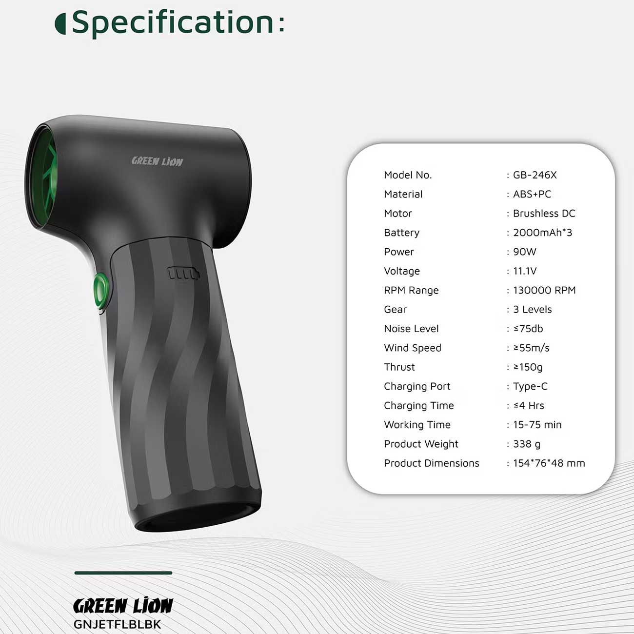 Green Lion GB-264X Jetflow Air Blower GNJETFLBLBK