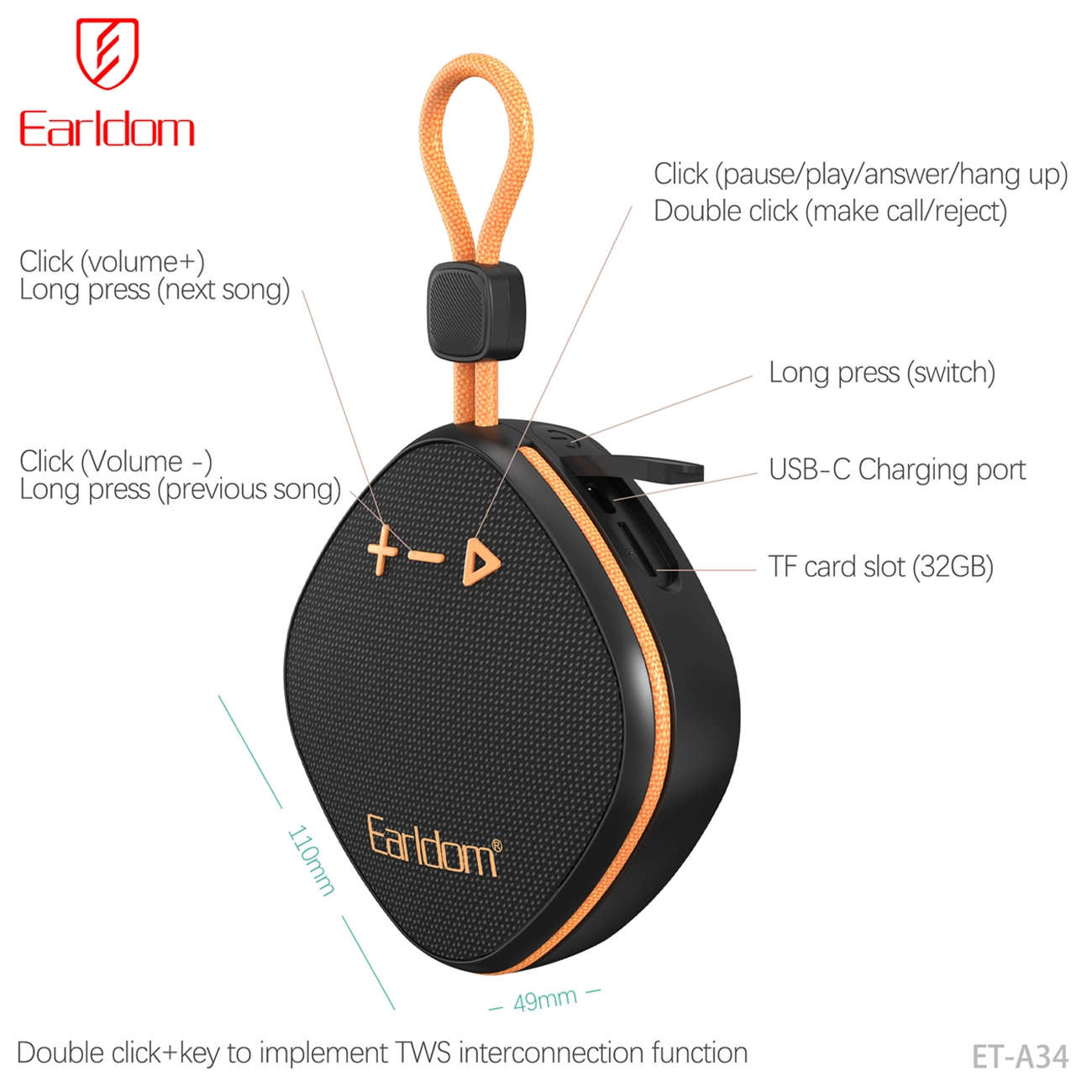 مینی اسپیکر بلوتوثی 5 وات ارلدام ET-A34