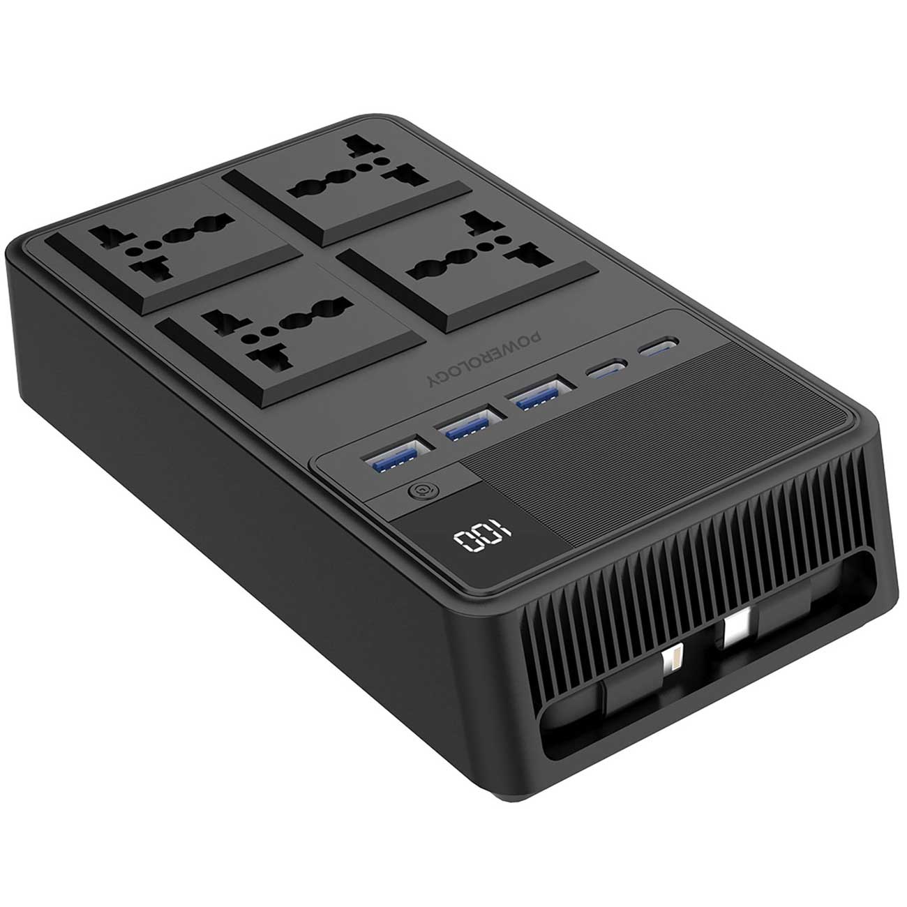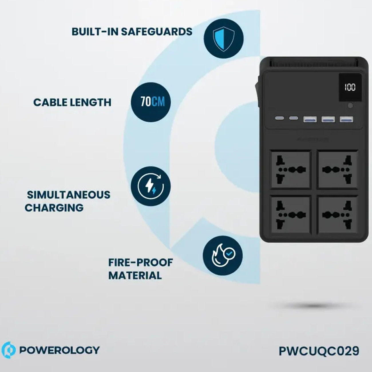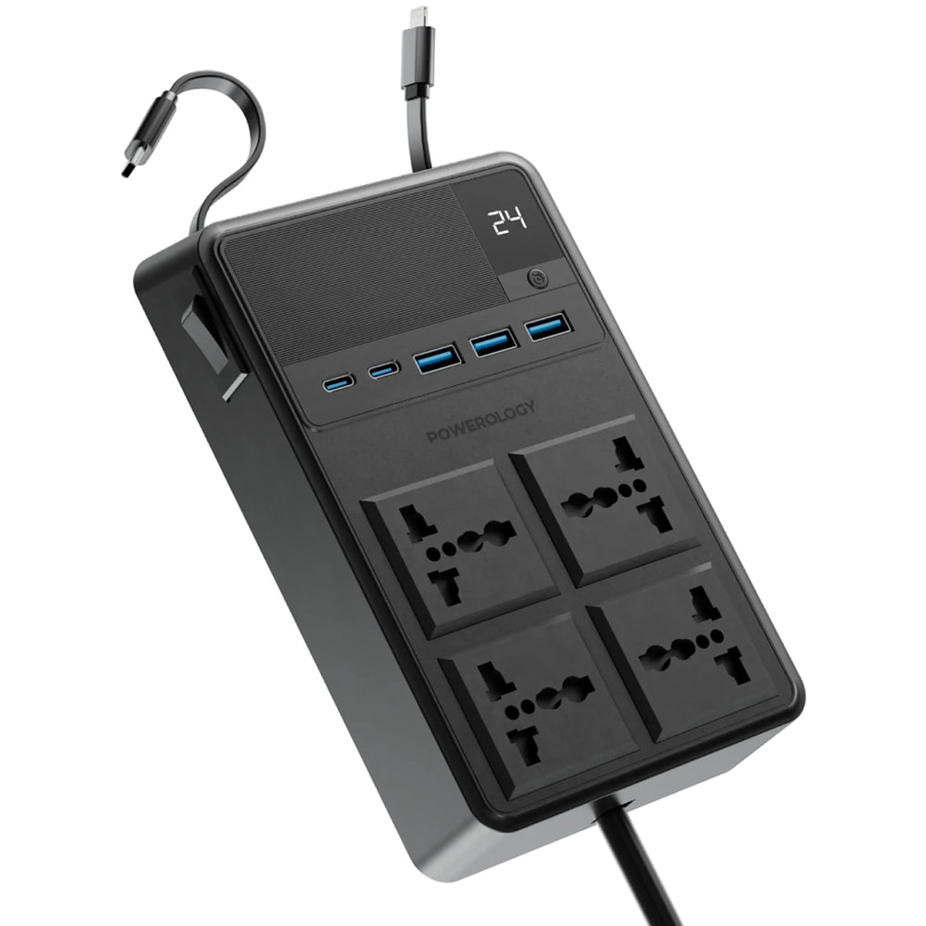 Powerology PWCUQC029 2500w 4 AC Power Strip with Built-In Retractable Cables